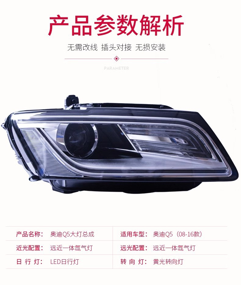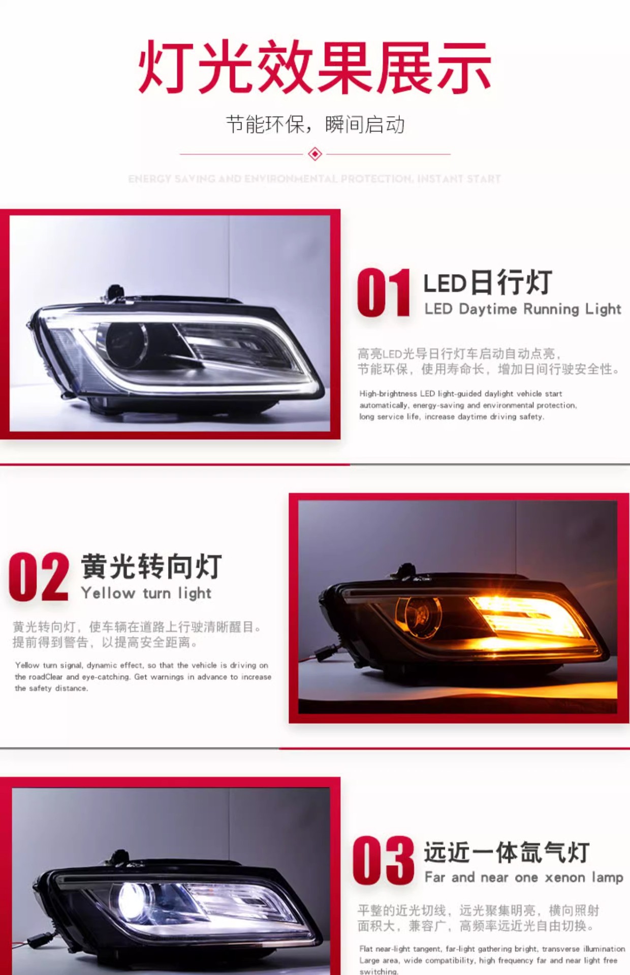 Headlight Assembly Xenon LED DRL Projector Lens for Audi Q5 (2009-2018)
