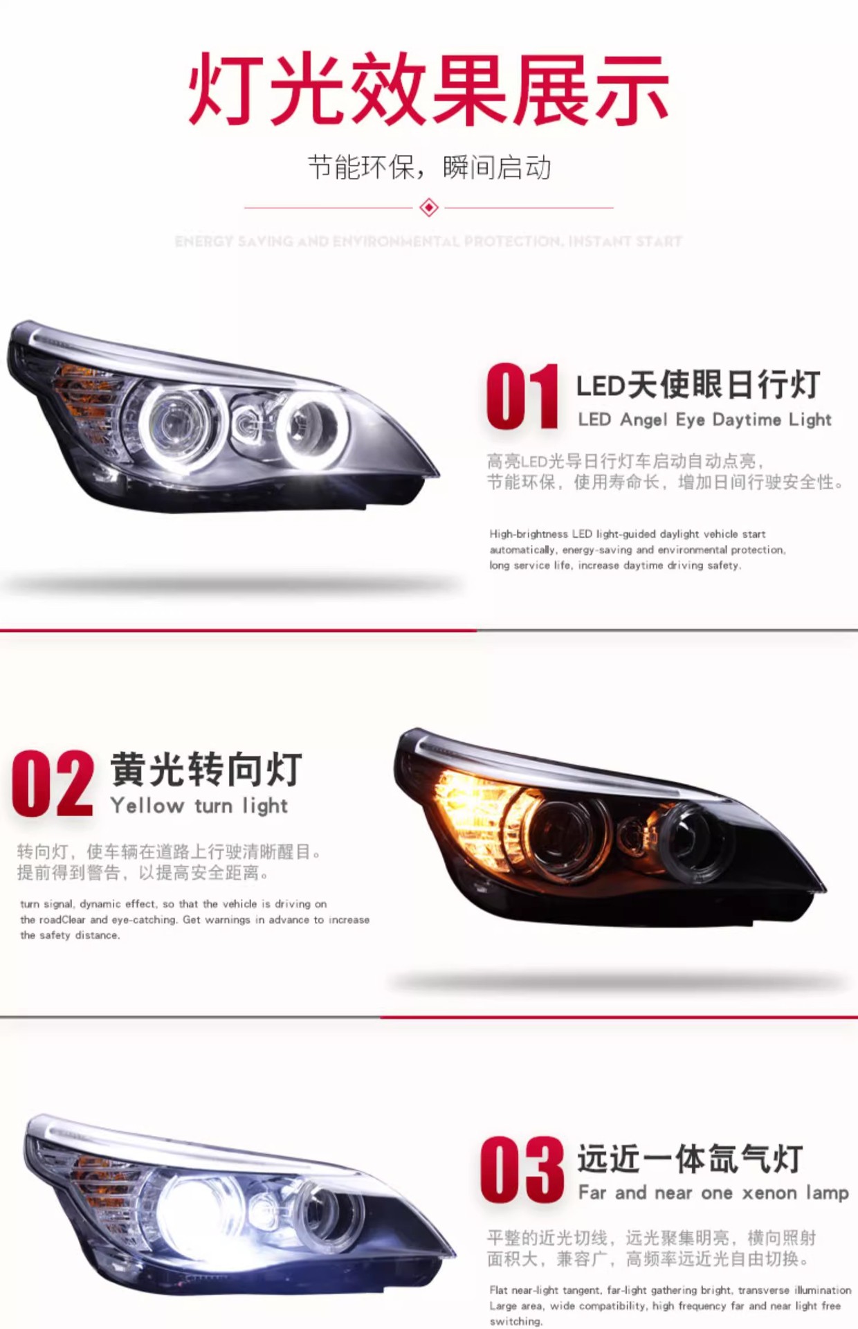 - Enhanced Visibility: Features advanced Xenon lighting technology for superior brightness and clearer road illumination, significantly improving night driving safety and reducing eye strain.