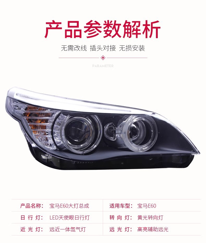 Headlight Assembly Xenon with Angel Eyes for BMW 5 Series E60 (2003-2010)