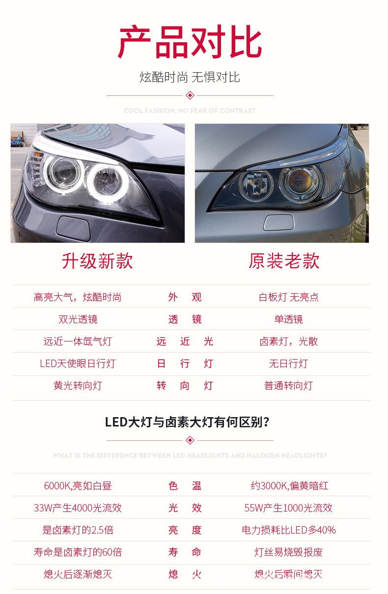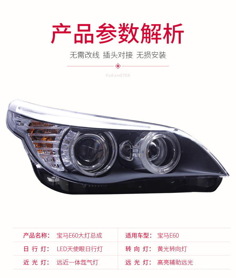 - Complete Set: Package includes 1 set (left and right) of headlight assemblies, offering a comprehensive solution for upgrading your E60’s lighting system.