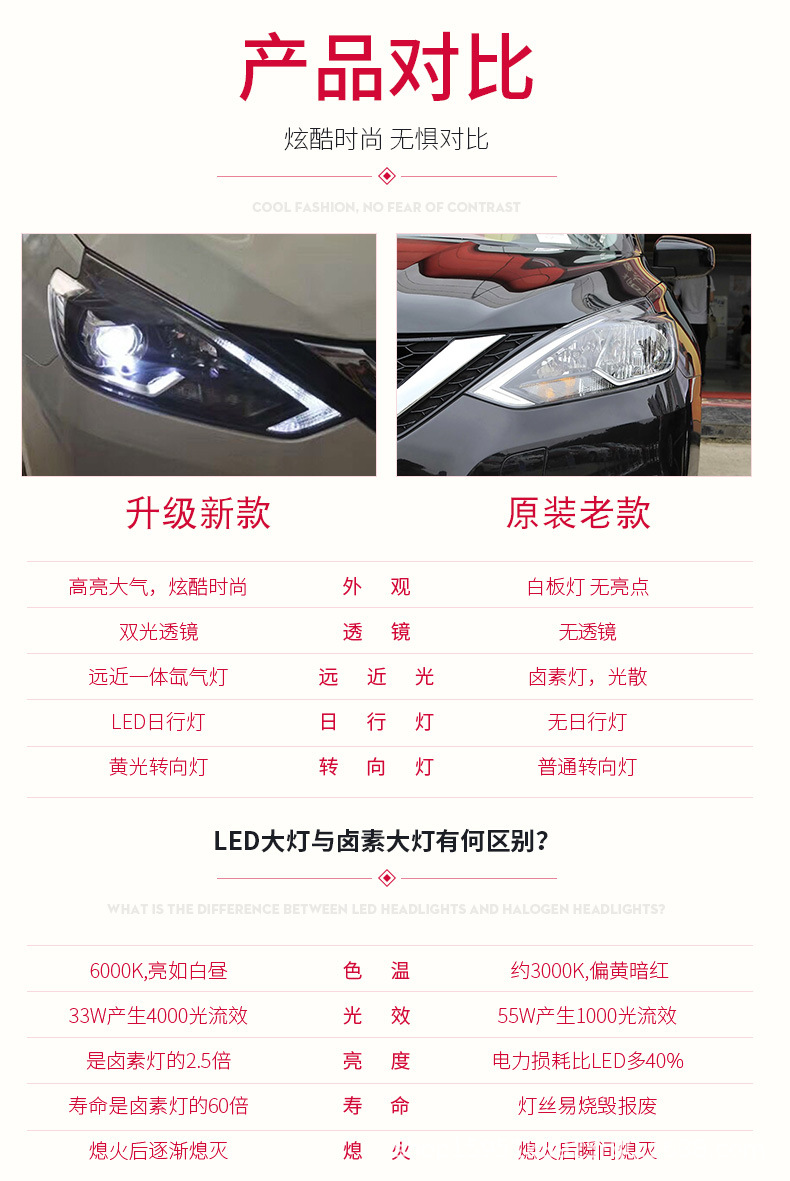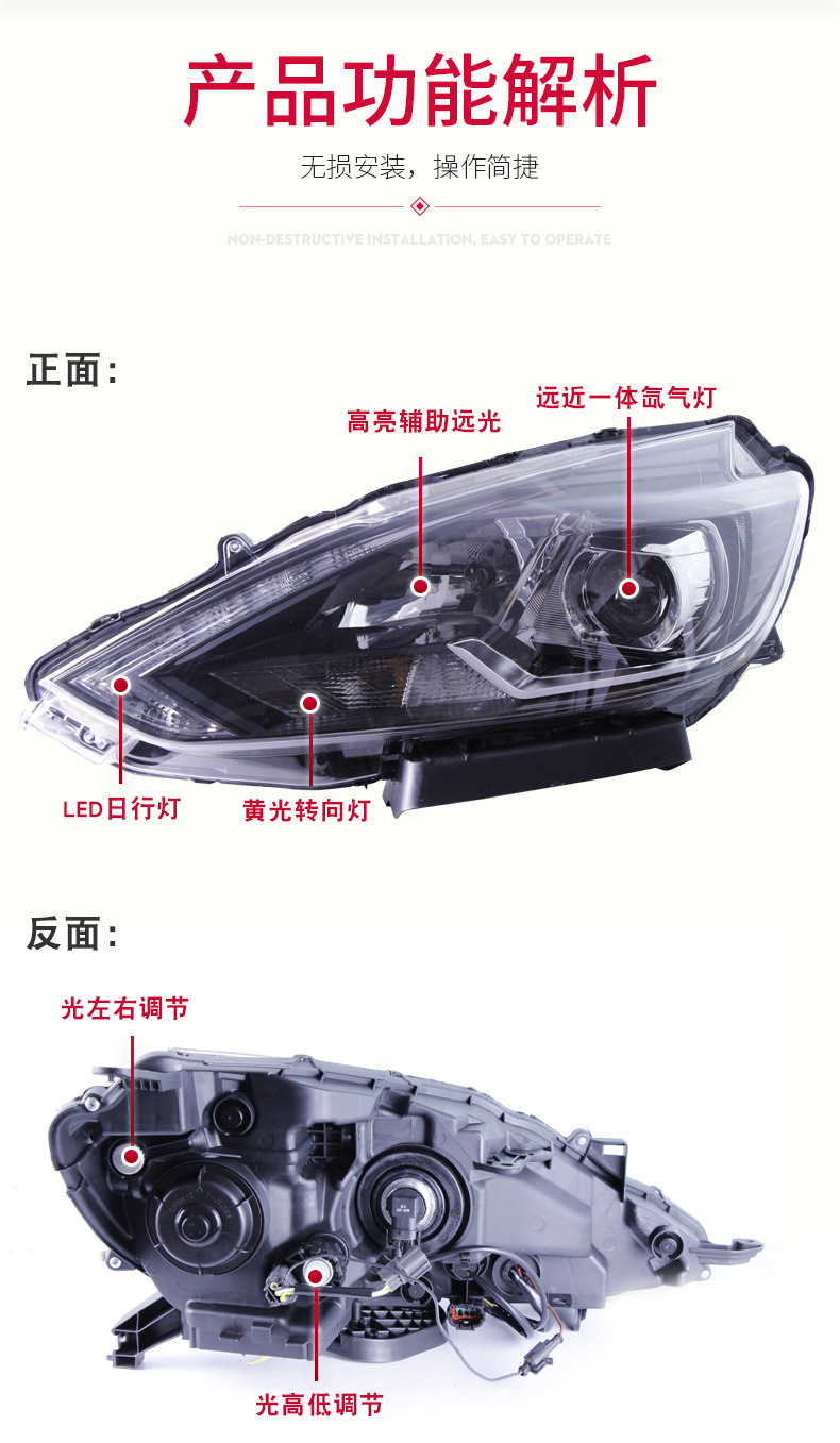 - Package Contents: Includes one set of headlight assemblies (left and right) for Nissan Sylphy, ready for installation. Please note that light bulbs are not included, allowing you to choose your preferred type for customized brightness and color temperature.