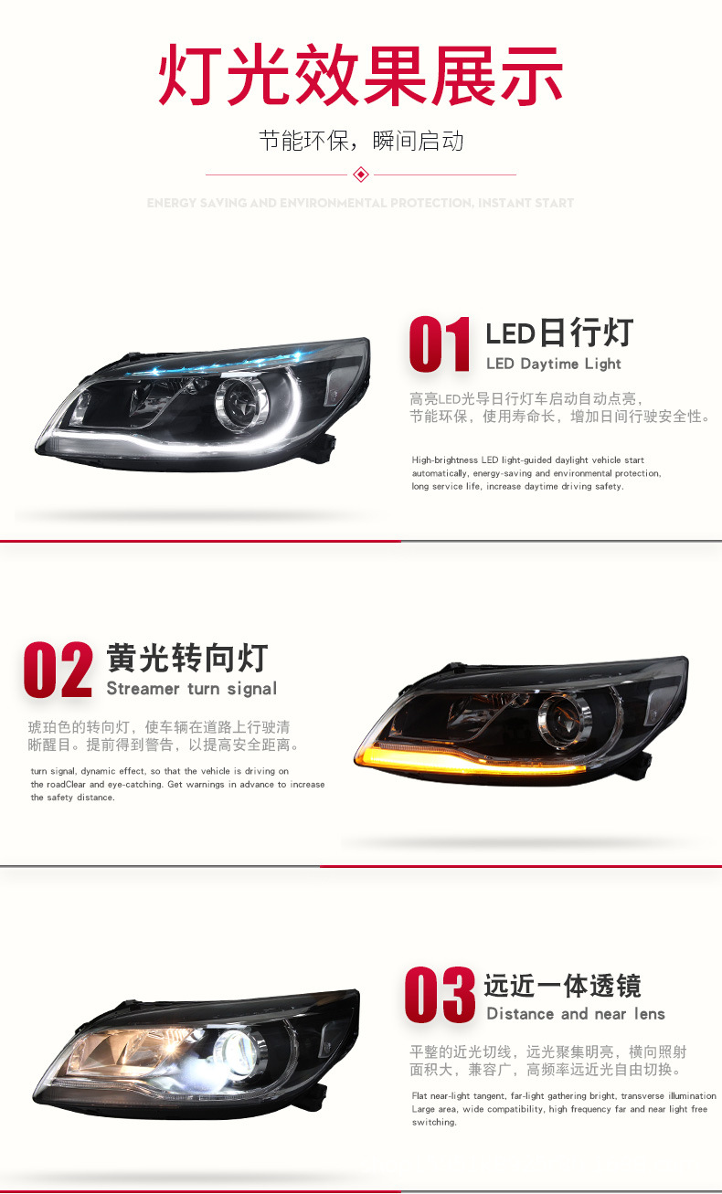 Headlight Assembly with LED DRL Turn Signal Xenon Headlamp for Malibu 2012-2015