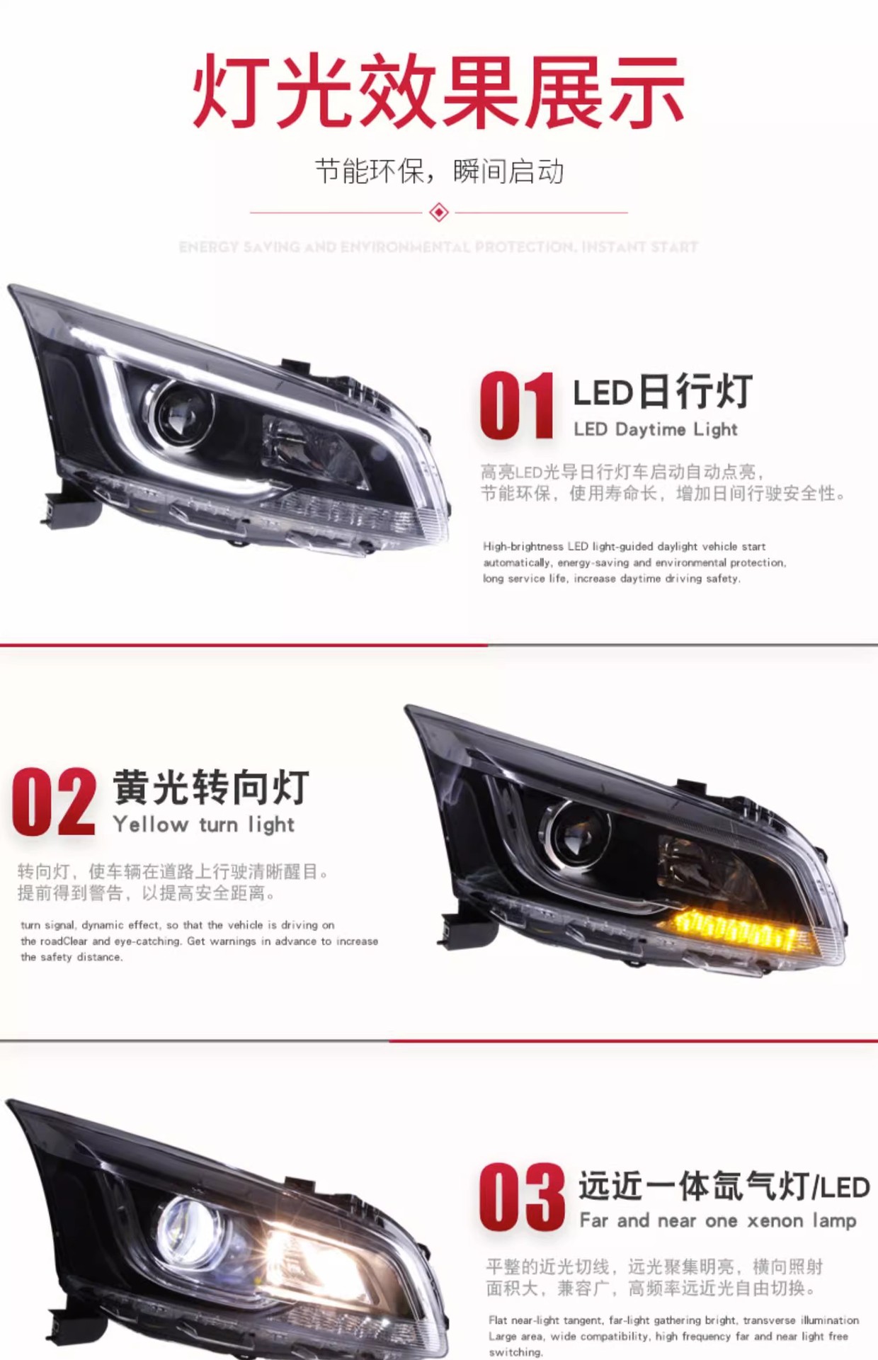 Headlight Assembly with LED DRL and Turn Signal for Chevrolet Cruze 2015