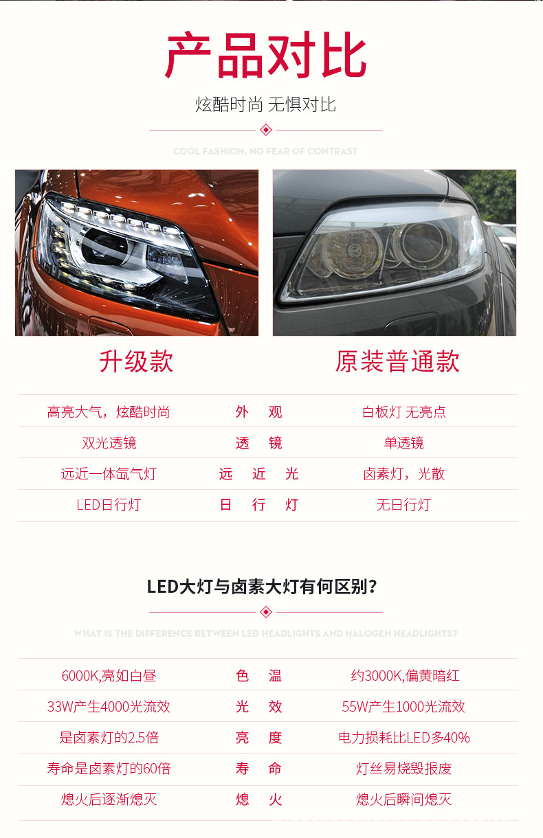 Headlight Assembly with LED Daytime Running Light for Audi Q7 2006-2015