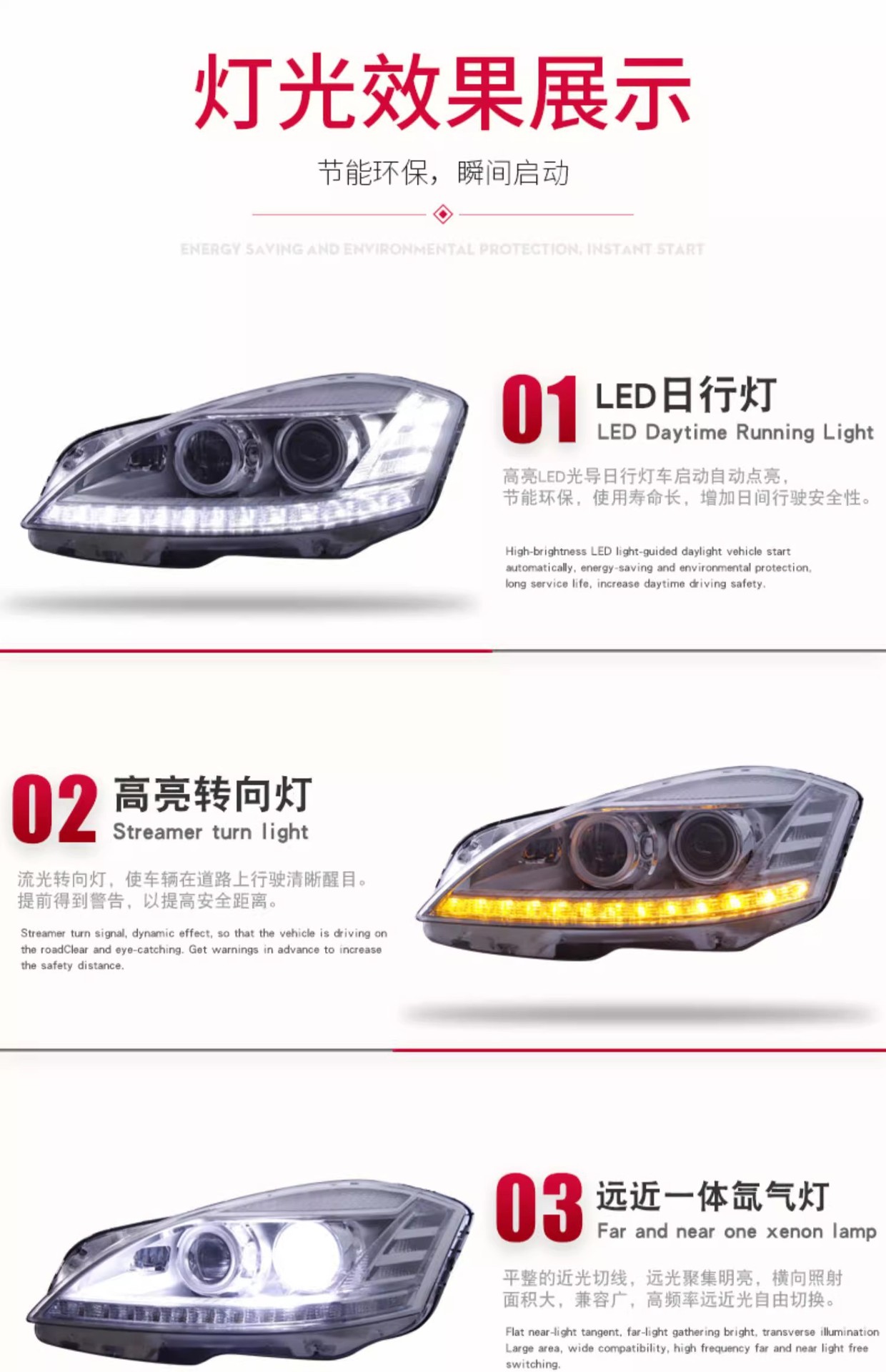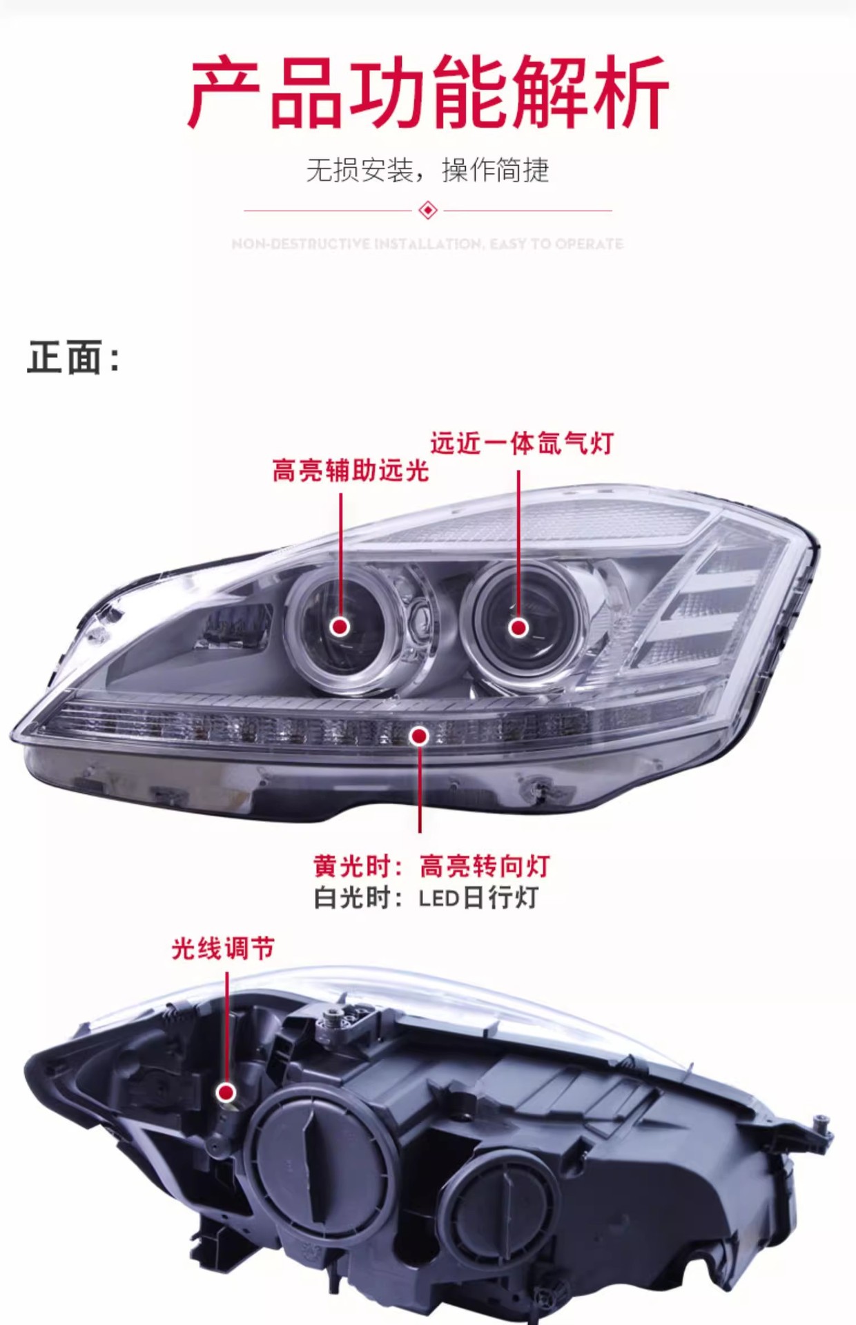 - Precise Fitment: Specifically designed for Mercedes-Benz S-Class W221 models, including S300 and S350 from 2006-2008, ensuring a perfect and seamless replacement for older headlights.
