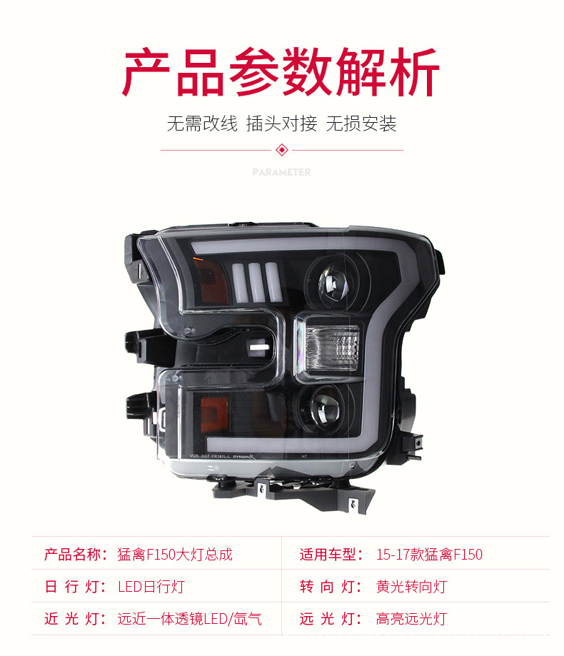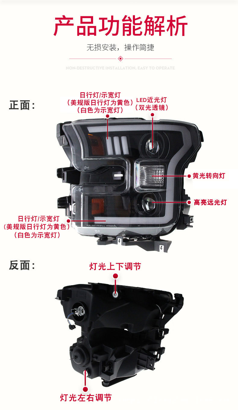 Headlight Assembly with Projector LED DRL Turn Signal for Ford F-150 Raptor 2015-2020 US Spec