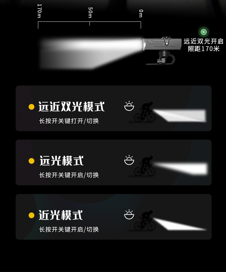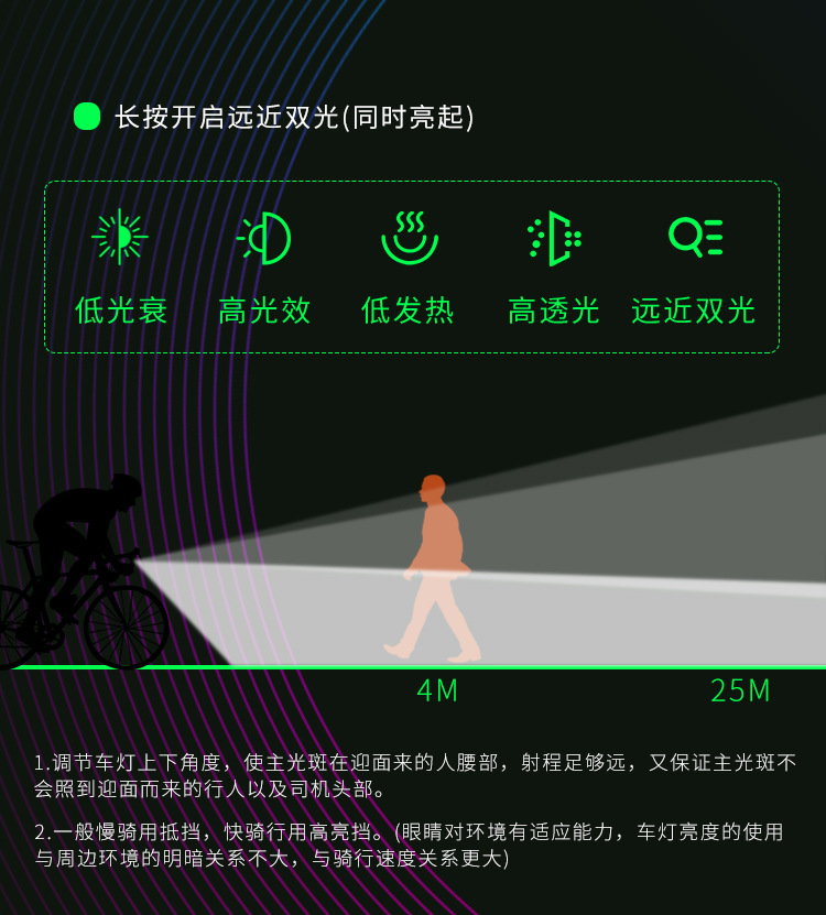 - Performance-Driven Design: Features dual-lamp beads and high lumen output with both far and near beam options, as shown, providing wide-angle illumination for night riding safety.