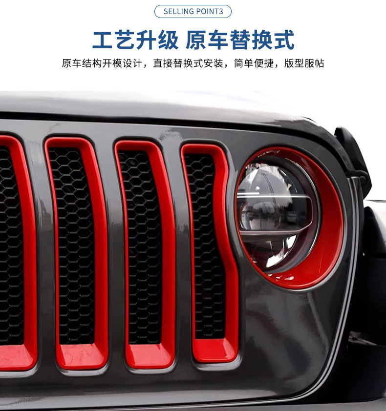 Headlight Grille Trim Cover Kit for 2018-2022 Jeep Wrangler JL JT Gladiator