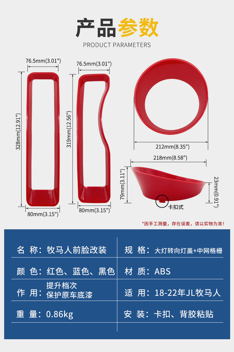 - Enhanced Aesthetic Appeal: Available in glossy black, vibrant red, eye-catching blue, or classic white finishes to instantly upgrade your vehicle’s front end, giving it a more aggressive and customized look.