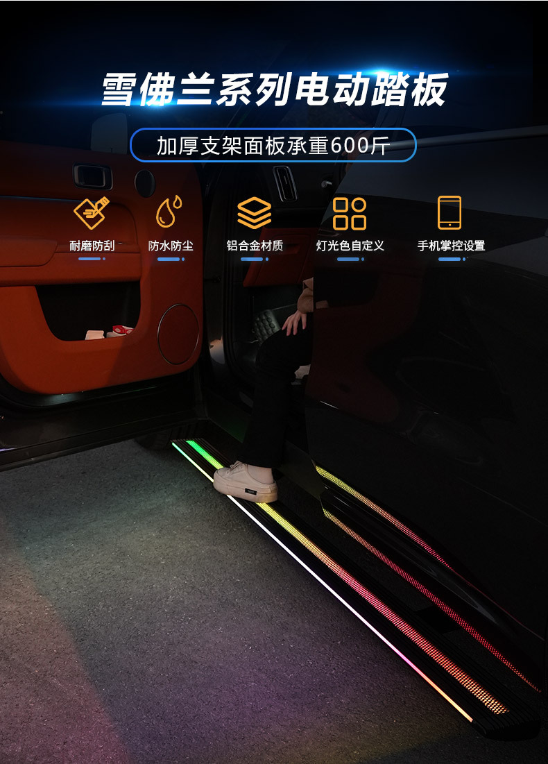 - Performance-Driven Design: Automatic retractable electric running boards provide convenient entry and exit, enhancing vehicle accessibility and comfort. Available with or without integrated LED lighting for added safety.