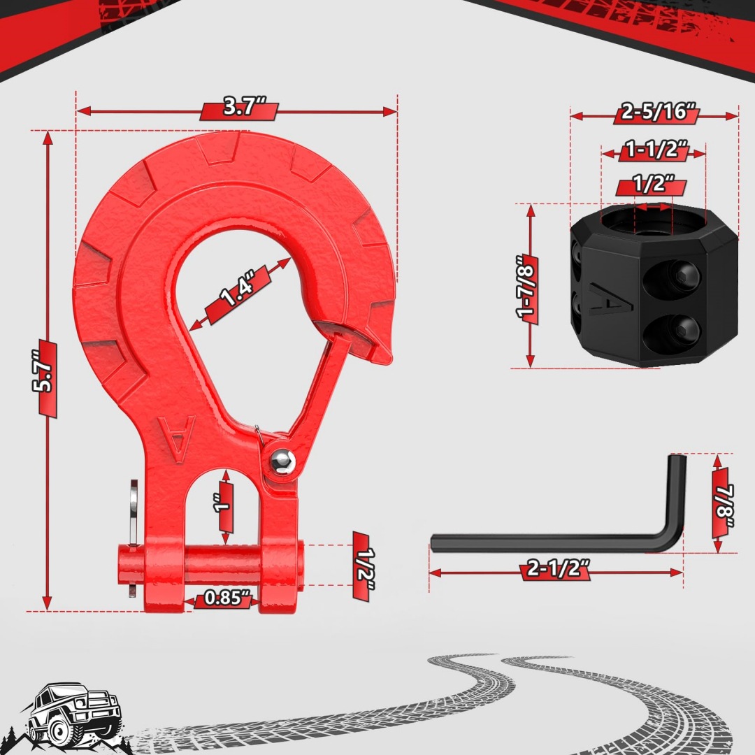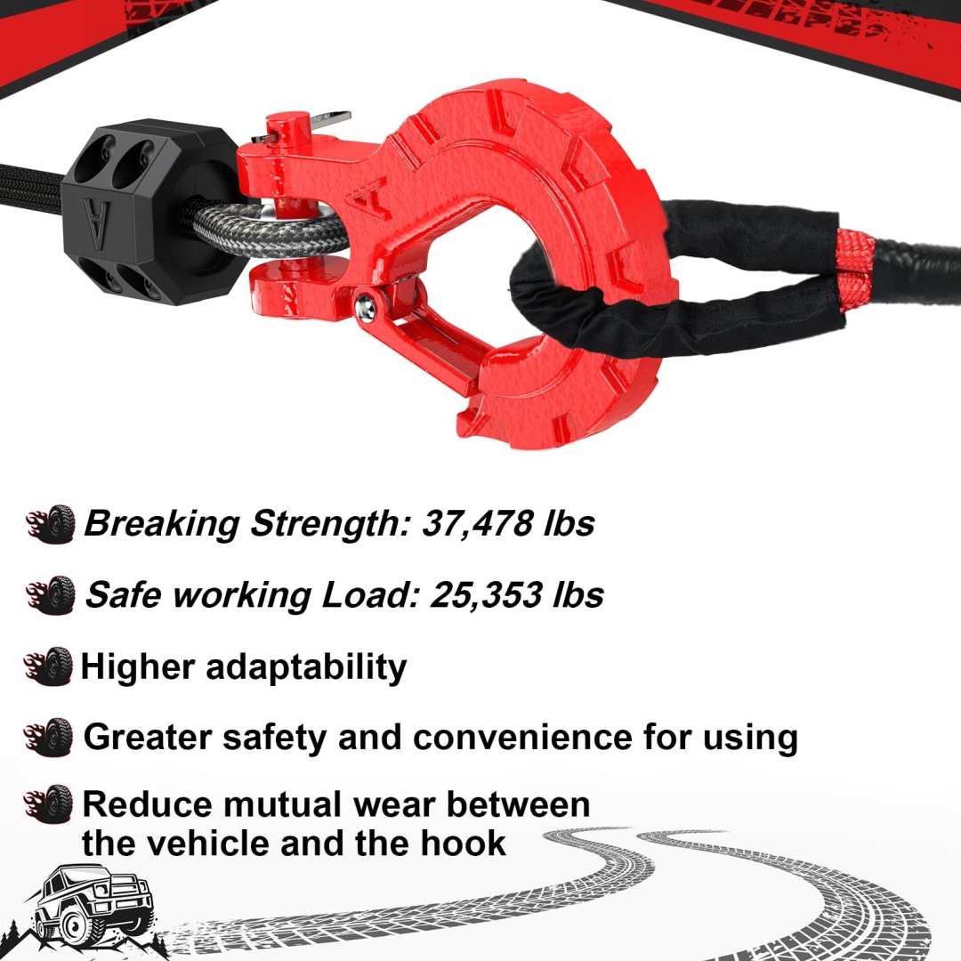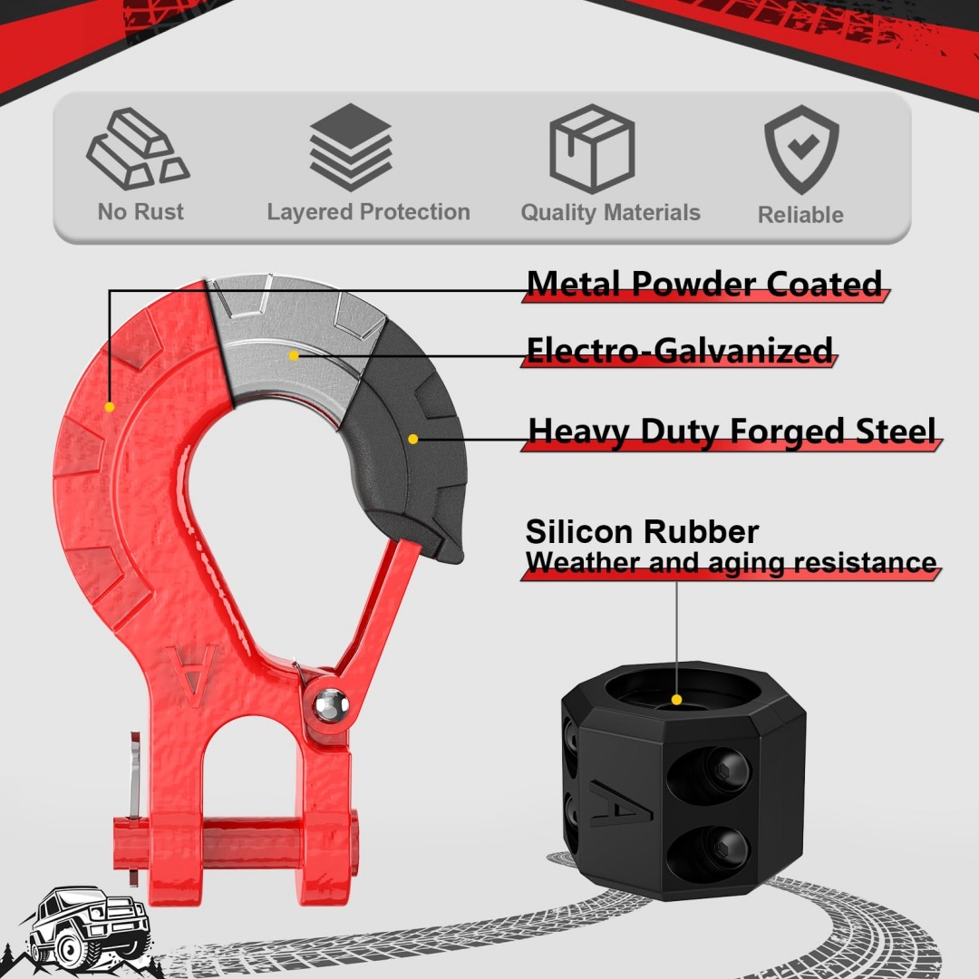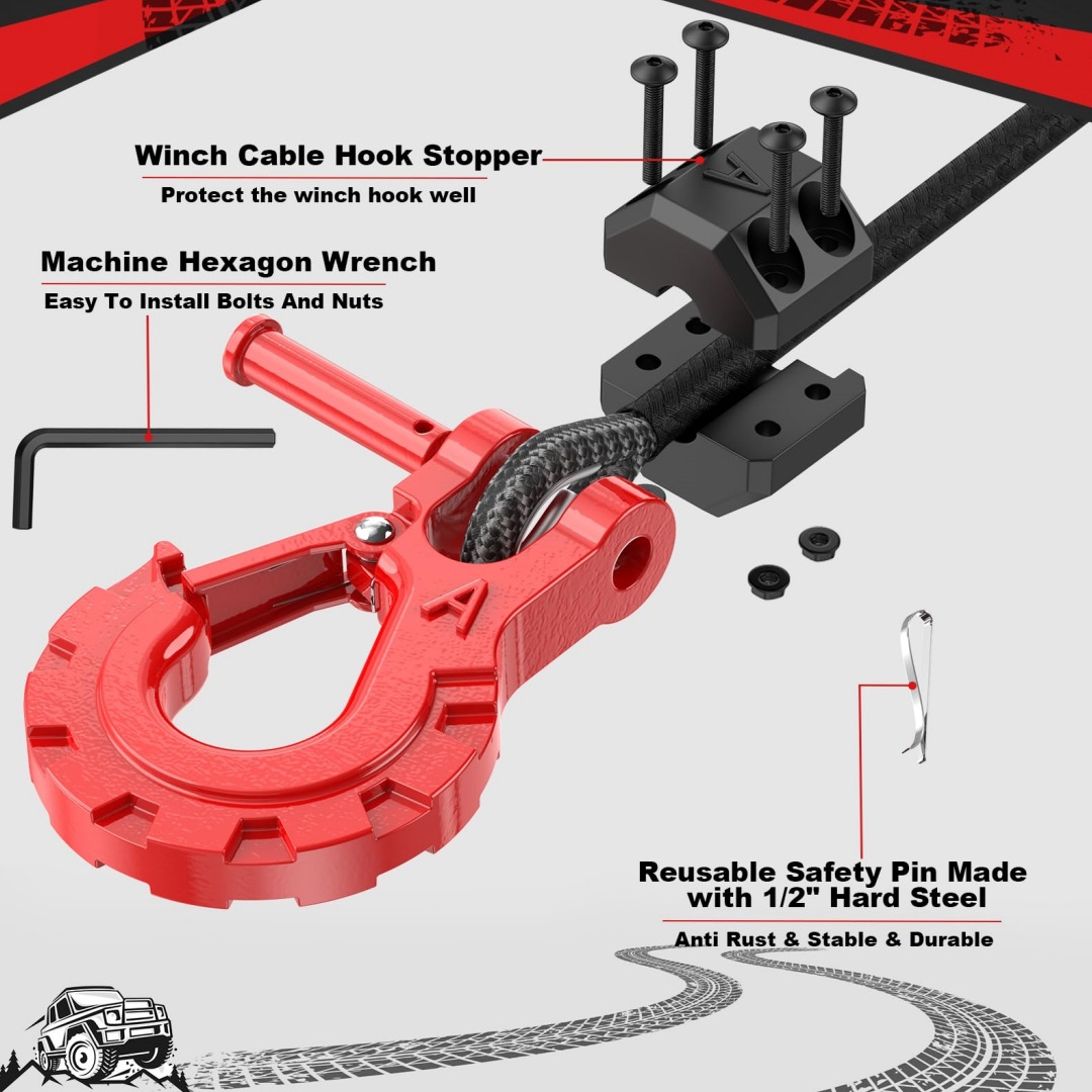 - Enhanced Safety & Performance: Features a robust design with a secure hook latch and a durable rubber stopper, providing increased safety during winching operations and protecting your winch cable from damage.