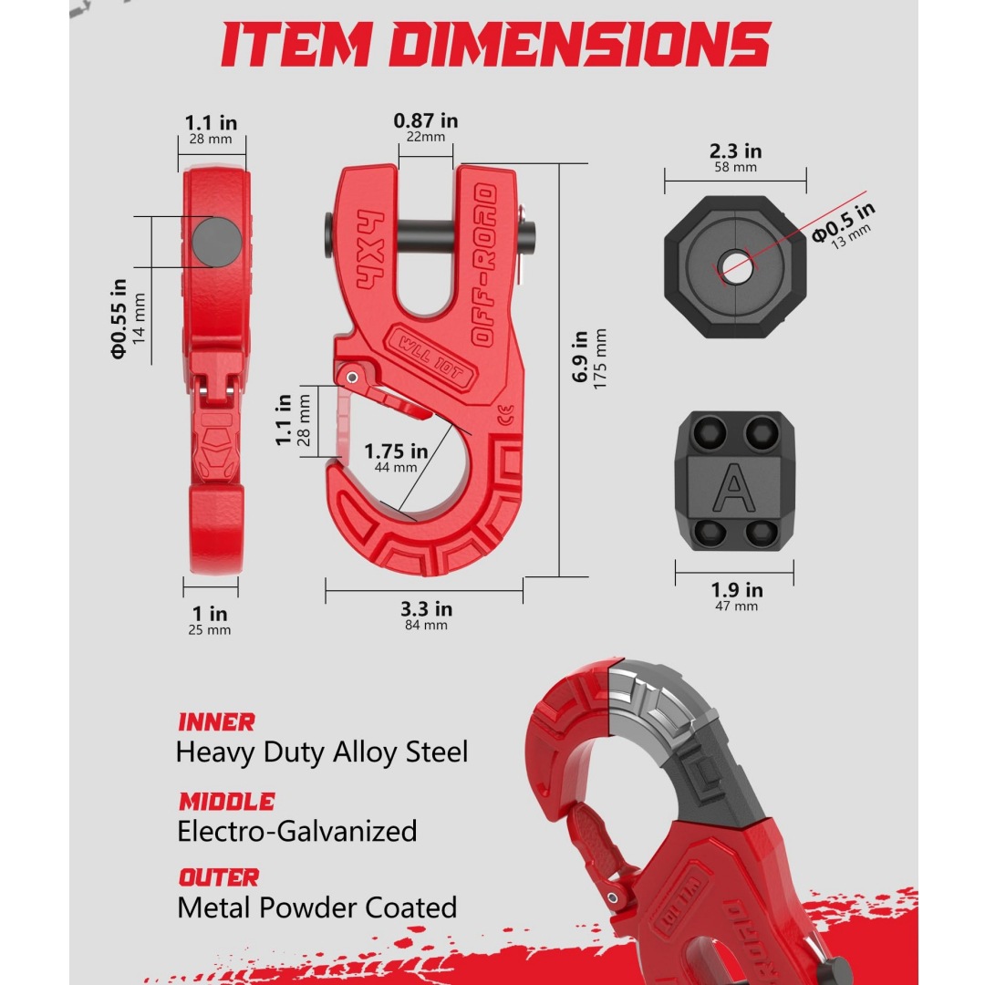 - Robust & Secure Design: Features a heavy-duty design with a robust latch to securely attach to winch lines and recovery straps, providing safe and efficient towing.