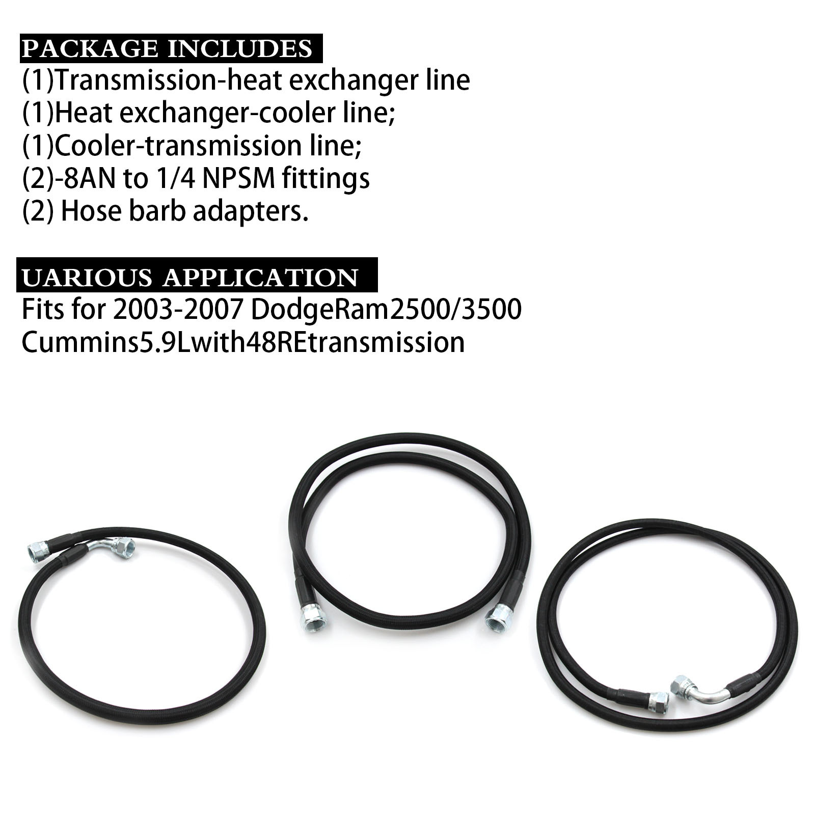 Heavy Duty Stainless Steel Braided Transmission Cooler Hose Line Kit for Dodge Ram 2500 3500 5.9L Cummins with 48RE Transmission 2003-2007