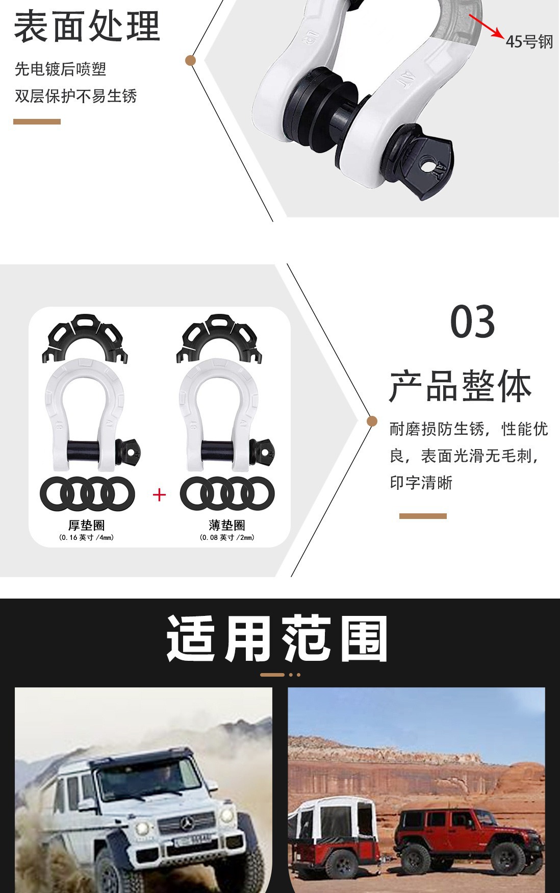 Heavy Duty Towing Receiver Shackle Bow D-Ring Hook for Off-Road Vehicle Recovery