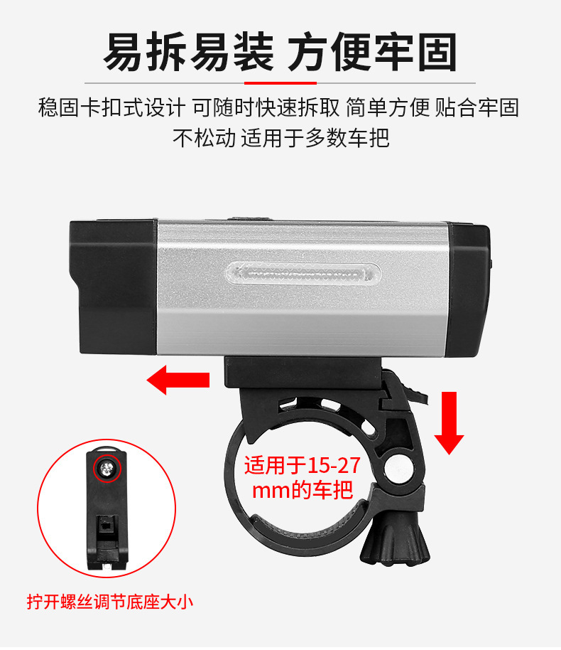 High Brightness 800-Lumen USB Rechargeable Bicycle Headlight for Mountain Bike Cycling