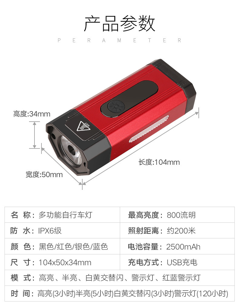 - Performance-Driven Design: Delivers powerful 800 lumens of brightness with a wide beam for excellent visibility and features USB rechargeable capability for convenience, as well as IPX6 waterproof rating highlighted in the image text.