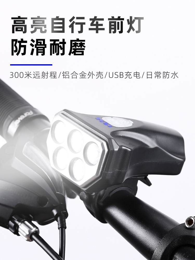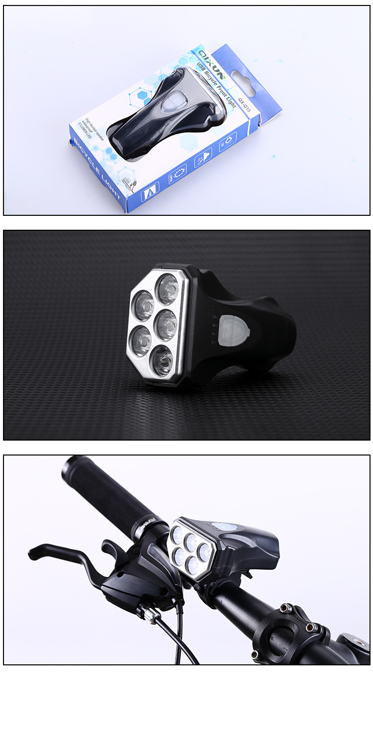 High Brightness Bicycle Front Light LED USB Rechargeable ABS Housing for Mountain Road Bike Night Riding