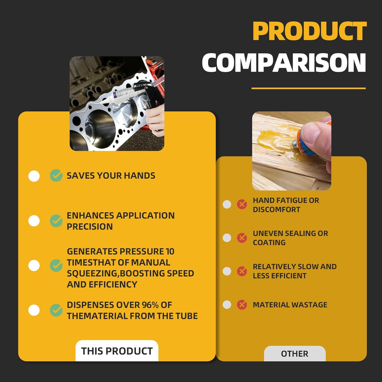 - Effortless Application: Engineered for high-efficiency dispensing, this tool simplifies the application of RTV and silicone, ensuring a smooth and consistent bead every time, reducing effort and mess.