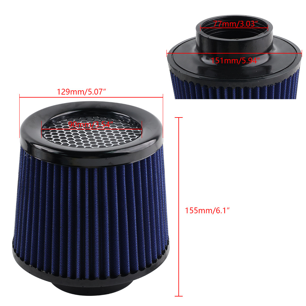 • Universal Fit for Enhanced Performance: This 3-inch (76mm) high-flow dry air filter is designed for universal compatibility with vehicles featuring a 76mm/3-inch inner diameter air intake pipe, making it a versatile upgrade for a wide range of automotive applications.
