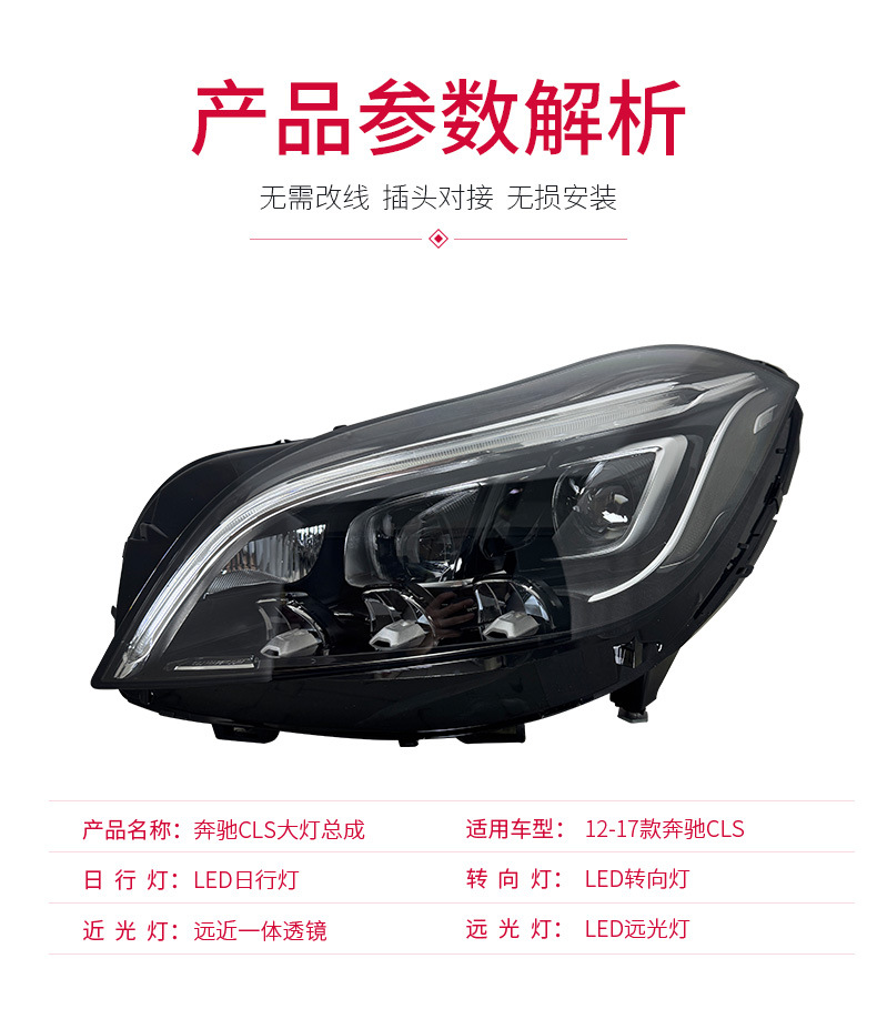 - Effortless Installation: Engineered for a straightforward, non-destructive installation process, allowing for easy upgrade without complex modifications. This package includes one high-spec CLS headlight assembly.