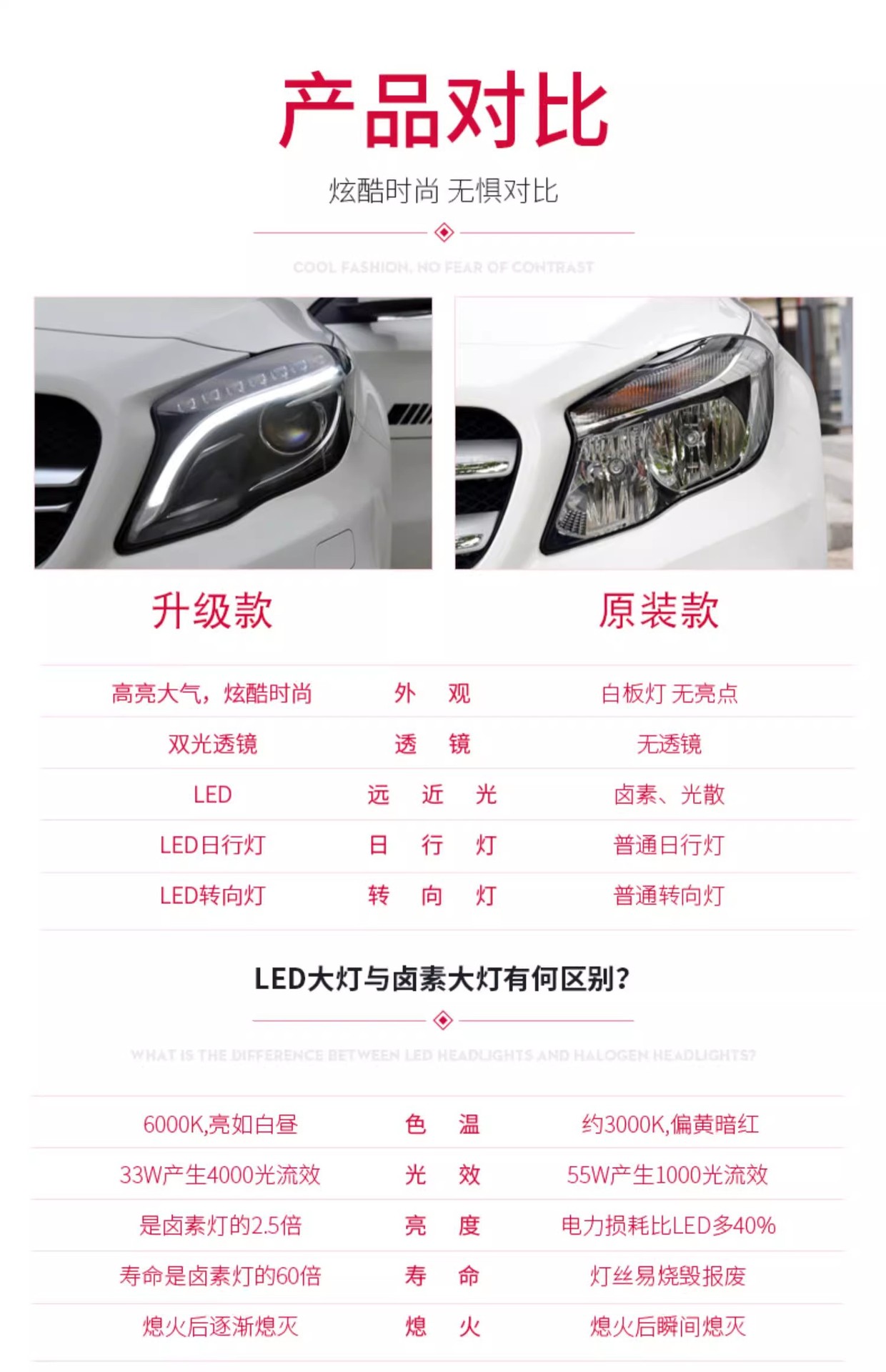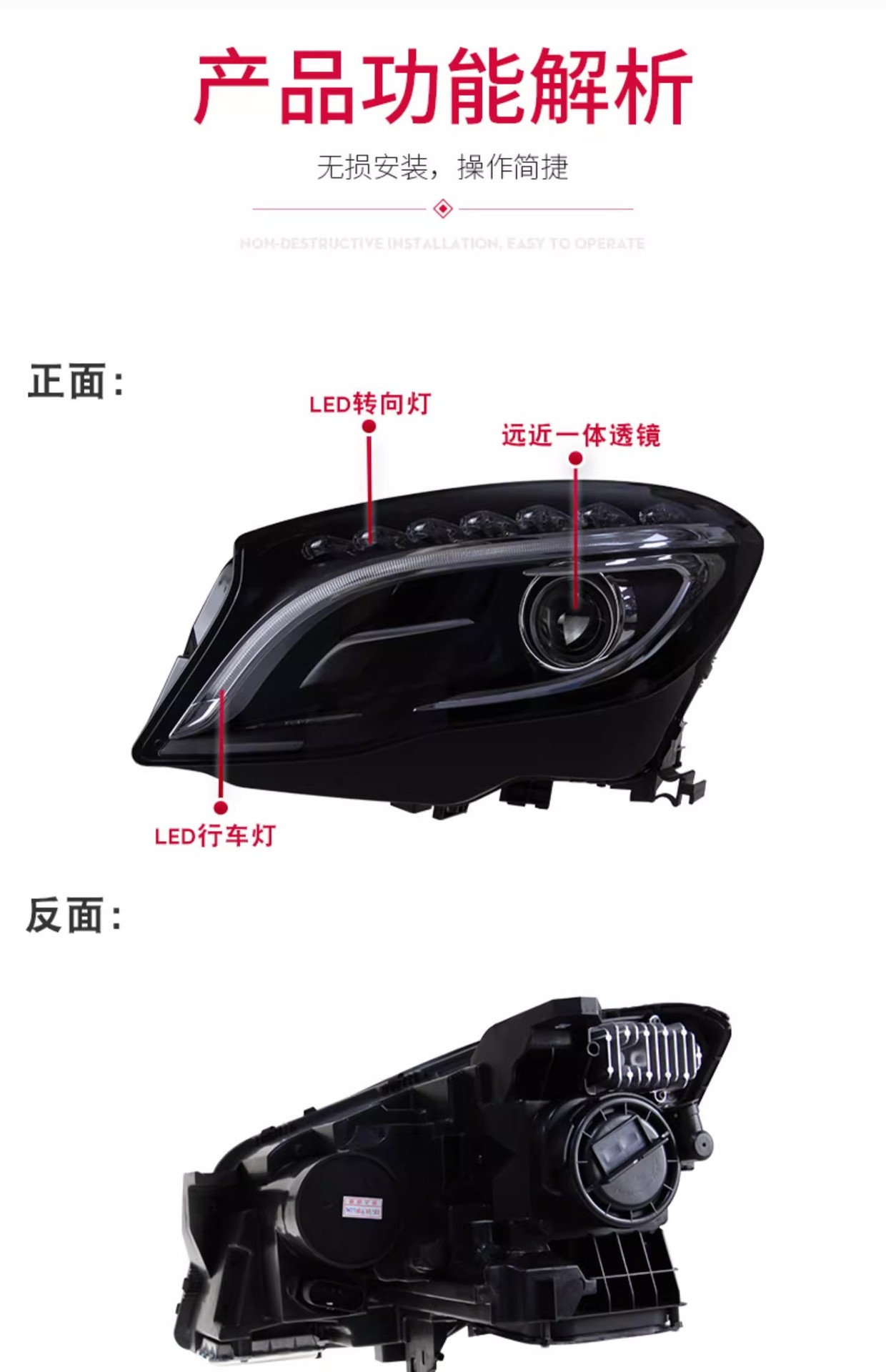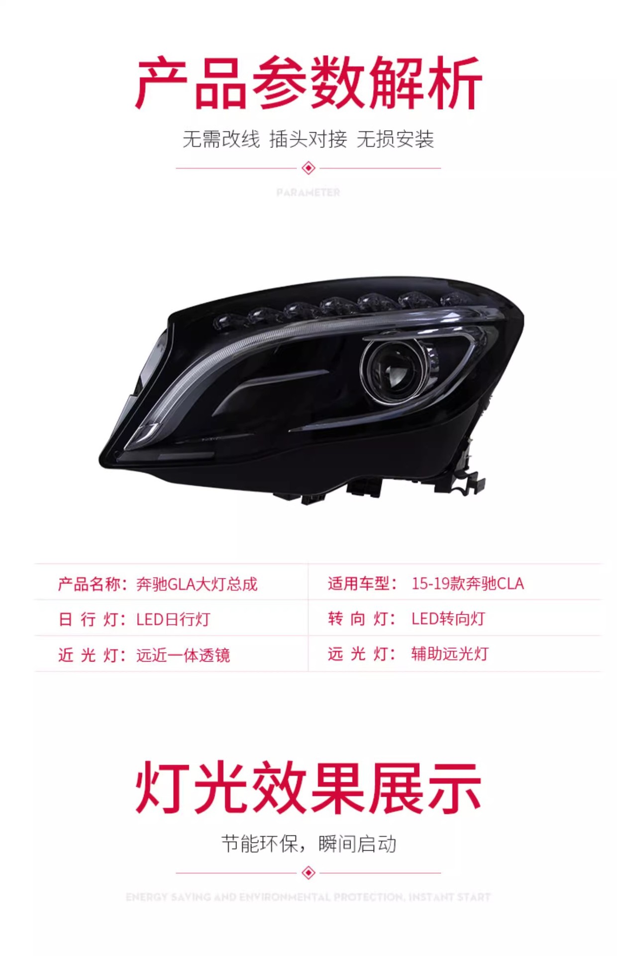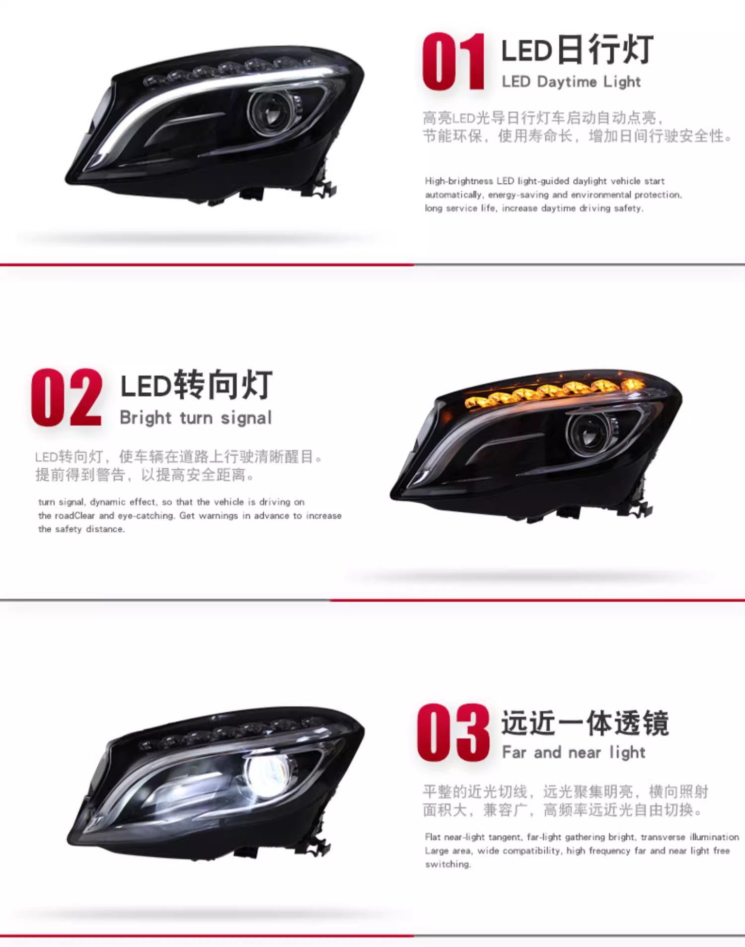 High Performance LED Headlight Assembly with DRL Signal Light Bi-Xenon Projector for Mercedes-Benz GLA