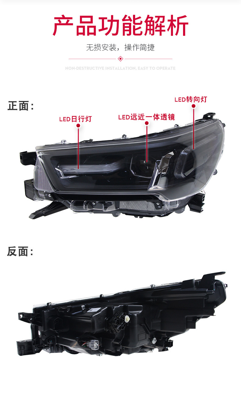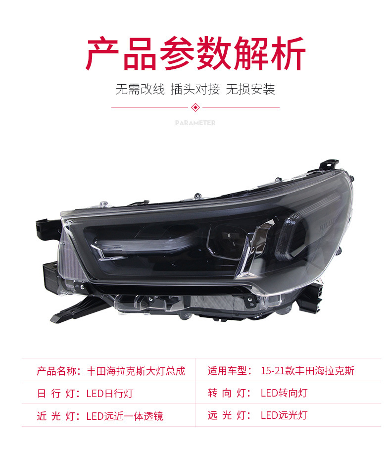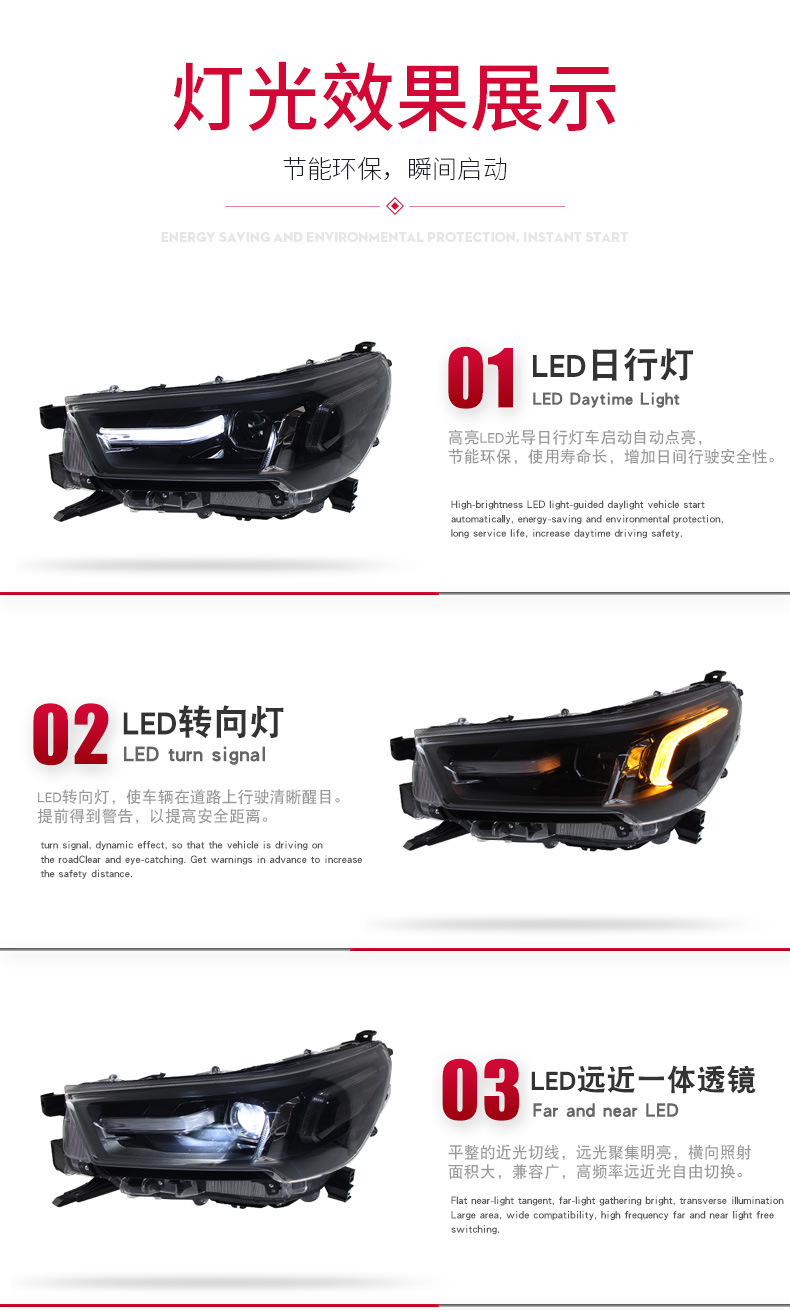 - Modern Aesthetic Upgrade: Upgrade your Hilux Revo with a sleek, modern headlight design, incorporating integrated LED Daytime Running Lights (DRL) to enhance your vehicle’s front-end appearance.