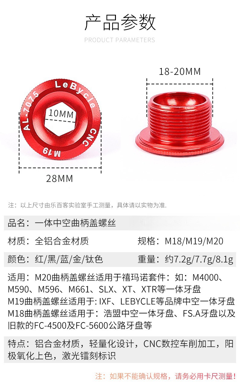 - Precise Fitment: Specifically designed for Mountain Bike, Fixed Gear, and Road Bike cranksets, compatible with Shimano systems. Available in M18, M19, and M20 sizes to ensure a perfect fit for various crank arms.