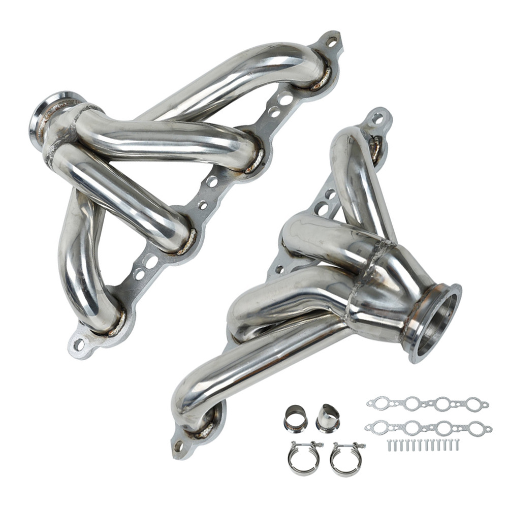 • Crafted from high-quality stainless steel, these headers offer exceptional durability and resistance to corrosion and high temperatures, ensuring long-lasting performance and a superior look that withstands the rigors of your engine.