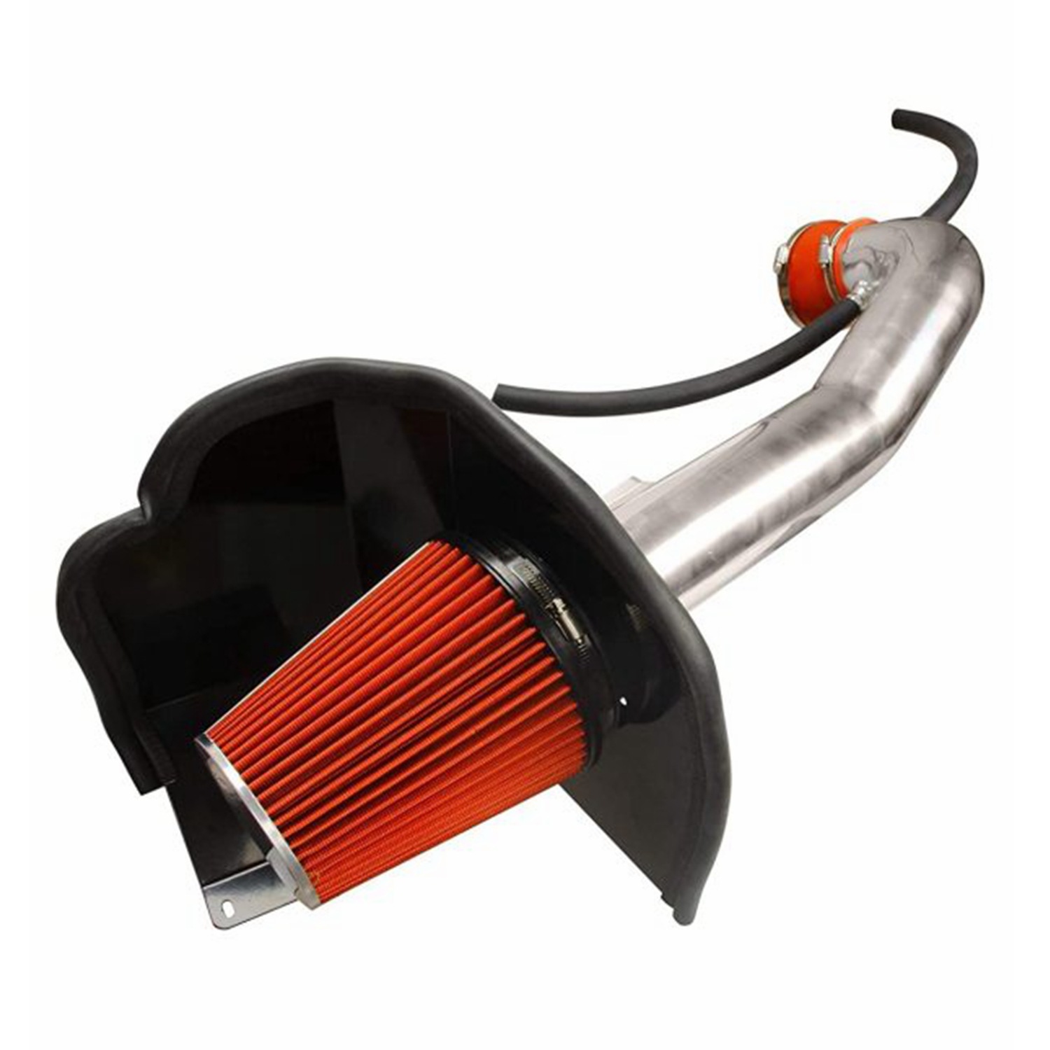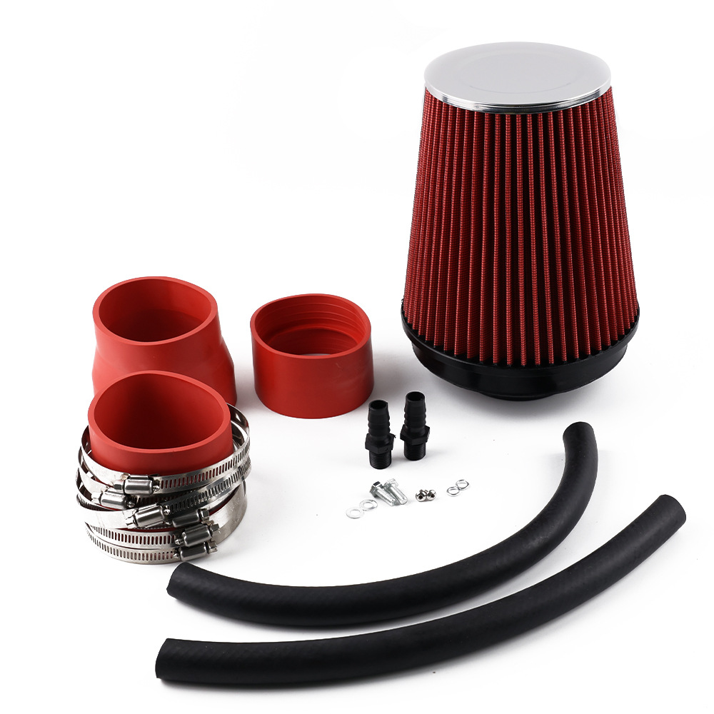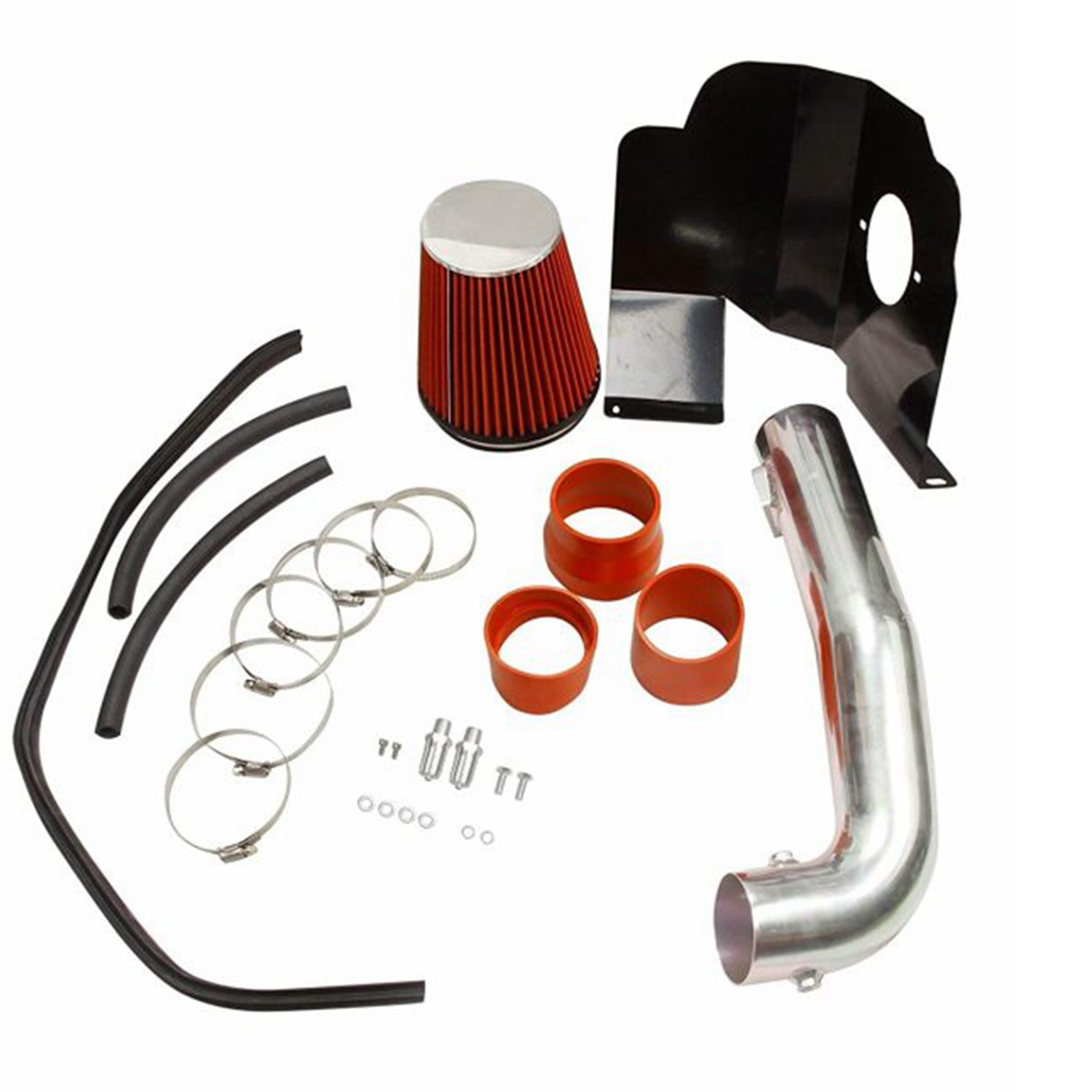 • Crafted from high-quality, durable silver aluminum, this intake pipe resists corrosion and wear, while the vibrant red filter adds a striking visual element under the hood.