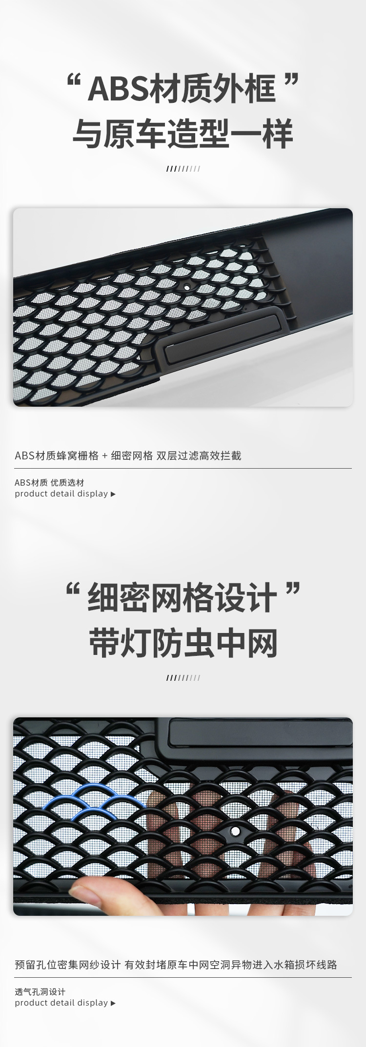 - Performance-Driven Design: This integrated bug net effectively prevents insects and small debris from entering the vehicle’s grilles, protecting the radiator and engine while maintaining airflow.