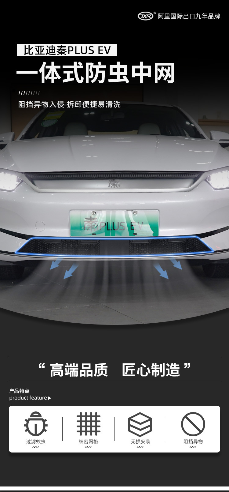 Integrated Front Grille Bug Net Insert for BYD Qin Plus EV 2020-Present