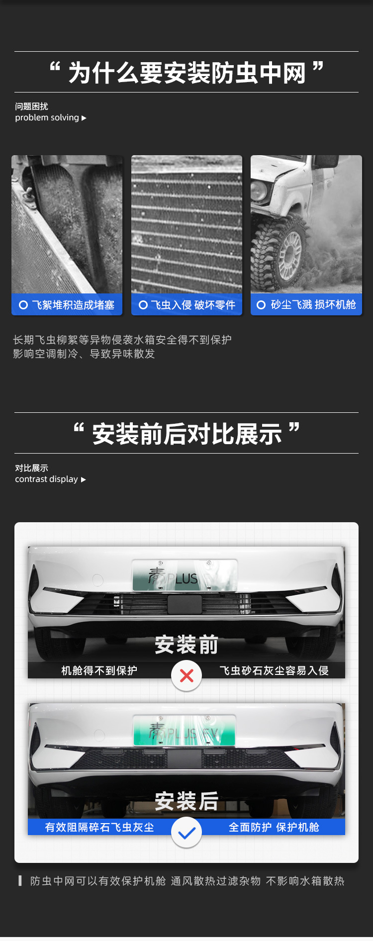 - Complete Package: Includes 1x integrated front grille bug net, exactly as pictured. Please verify fitment details before purchasing.