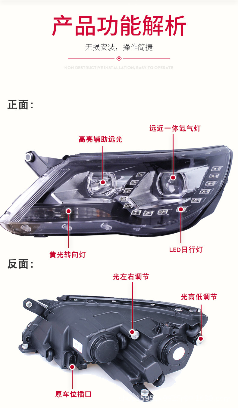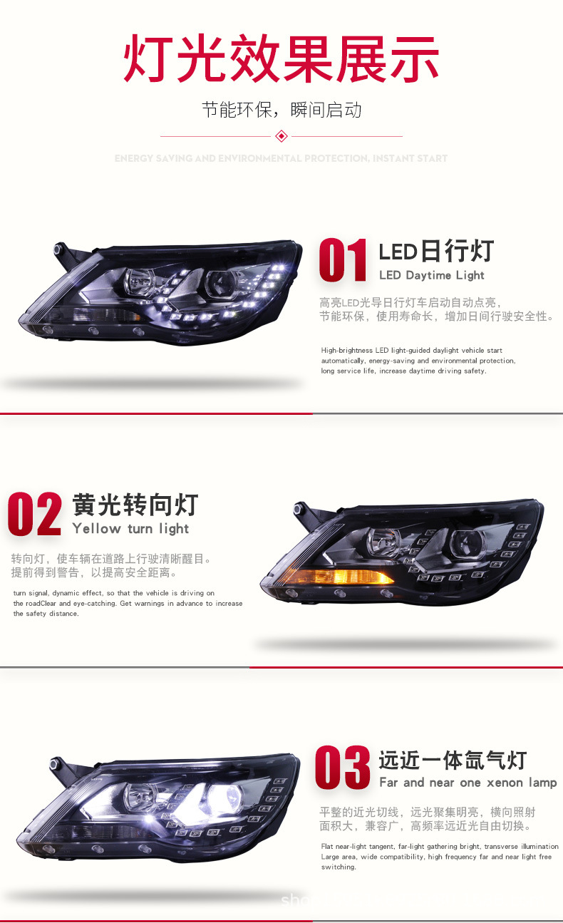 - Modern LED DRLs: Integrated with bright LED Daytime Running Lights (DRLs) to provide a contemporary look, increase vehicle visibility during the day, and add a stylish upgrade to your Tiguan.