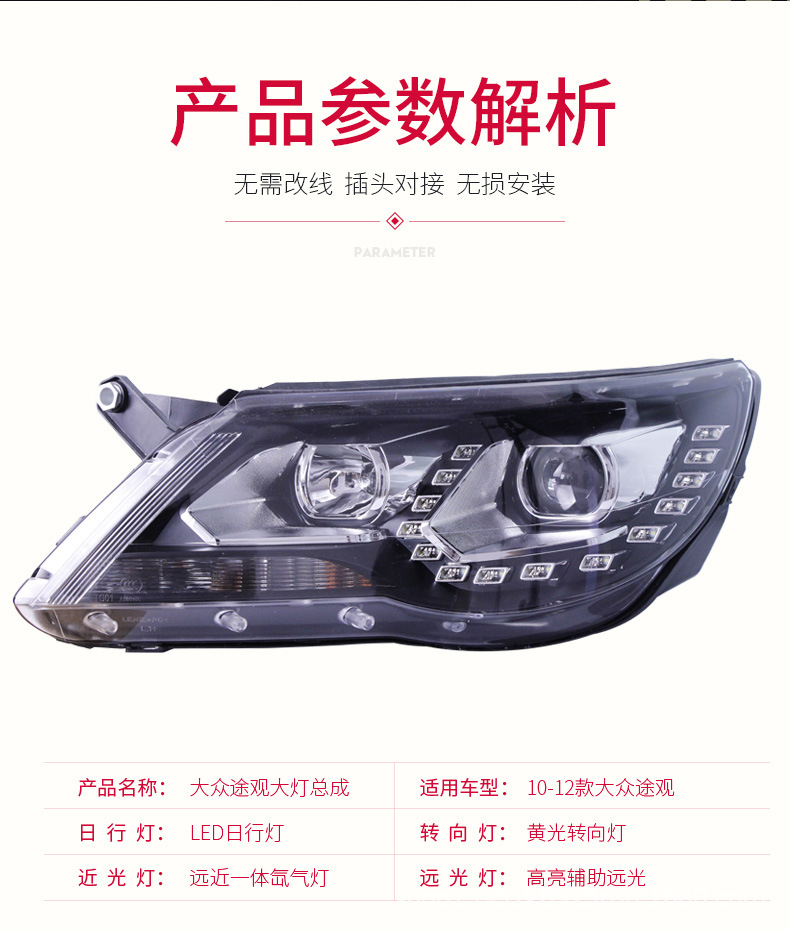 - Precise Fitment: Specifically designed for Volkswagen Tiguan 2009, 2010, 2011, and 2012 models, ensuring a perfect, direct-fit replacement for your original headlight assembly.