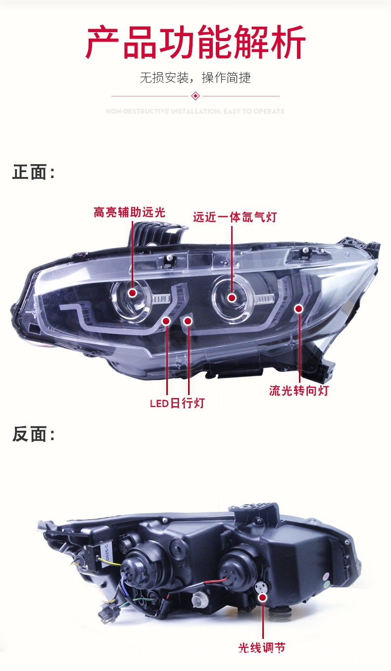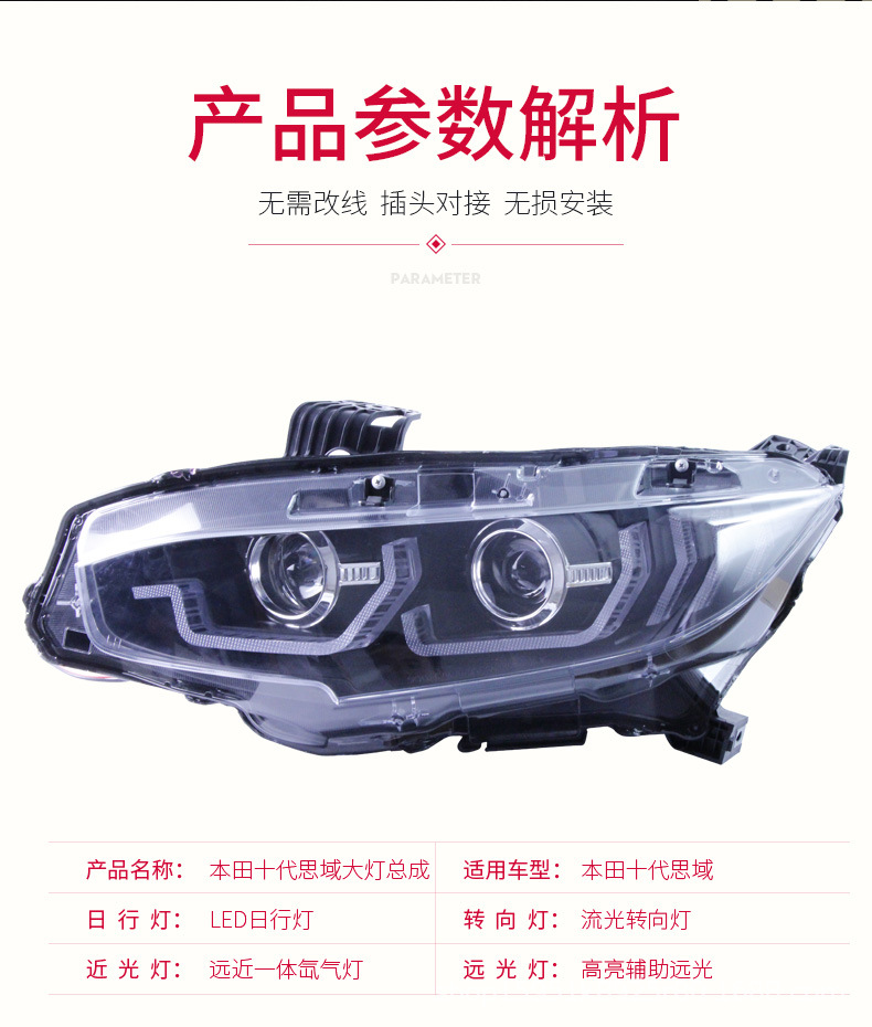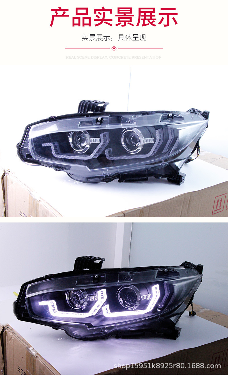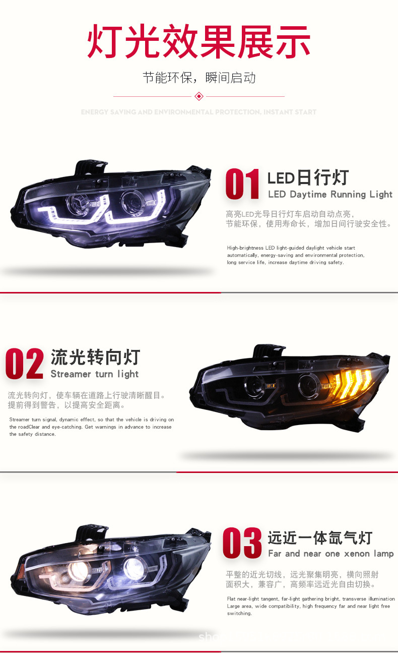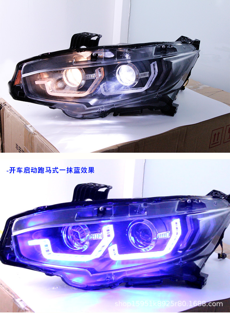 Integrated Headlight Assembly LED DRL Sequential Turn Signal Bi-Xenon Projector for Honda Civic 10th Generation
