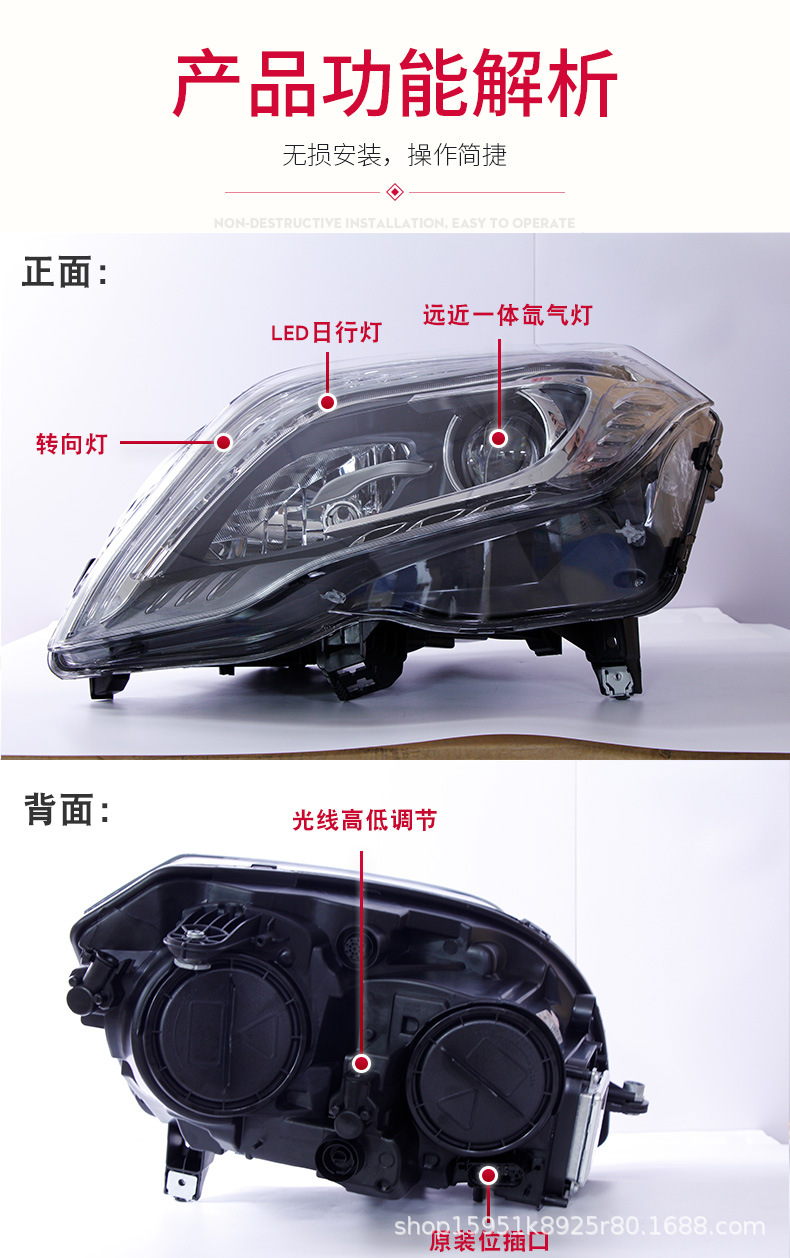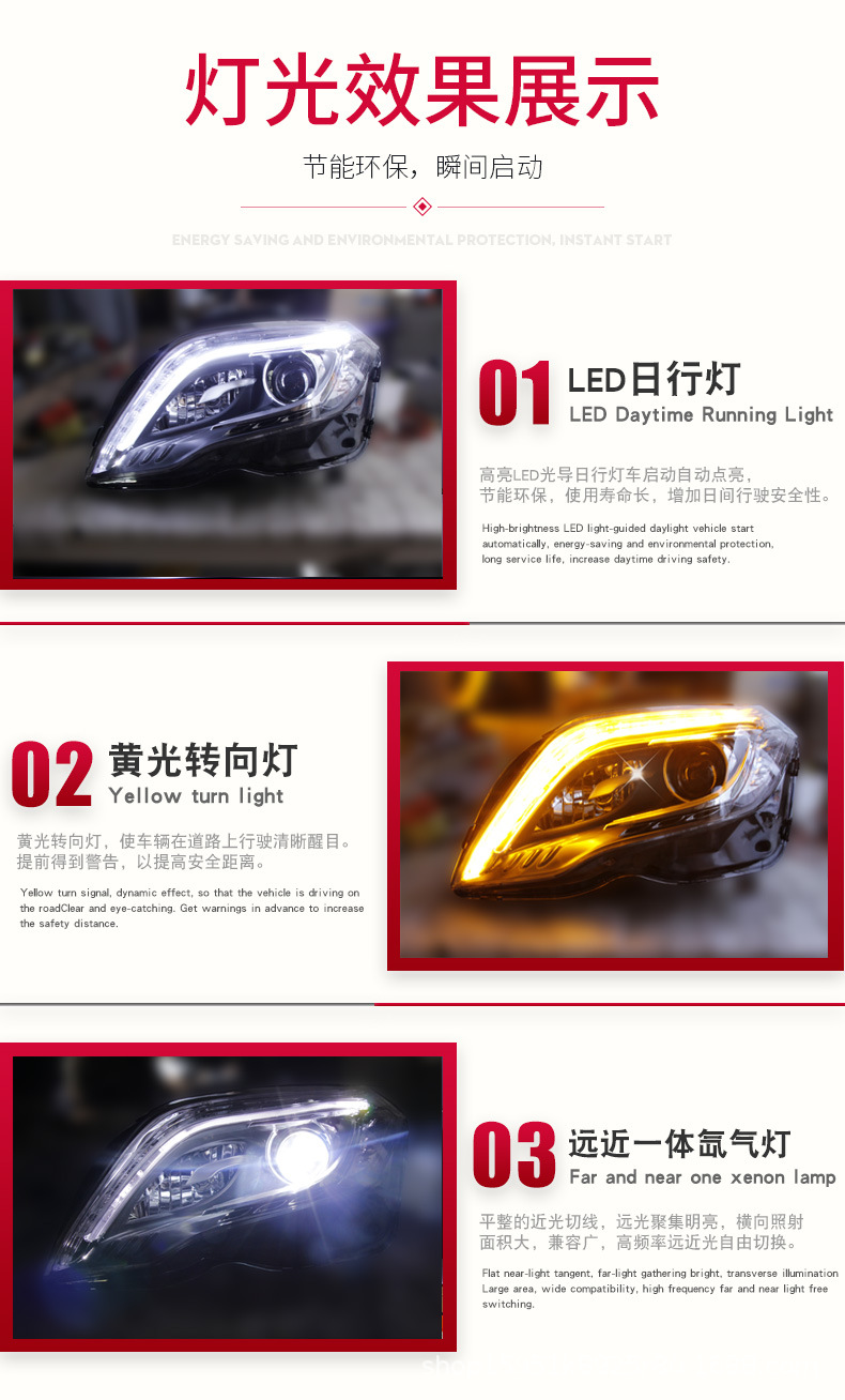 - Modern Styling Upgrade: Transform the front-end aesthetics of your GLK with this sleek and modern headlight assembly. The integrated LED DRL not only enhances safety but also gives your vehicle a sophisticated and contemporary look.