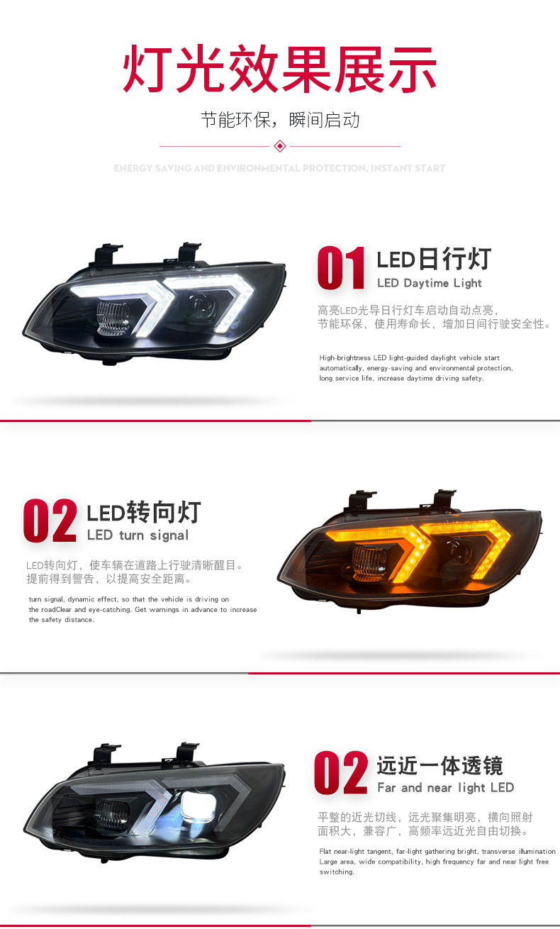 Integrated Headlight Assembly with LED DRL Turn Signal Projector Lens for BMW 3 Series E92 E93 (2011-2013) M3