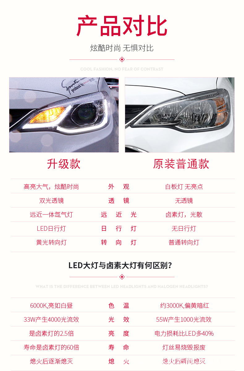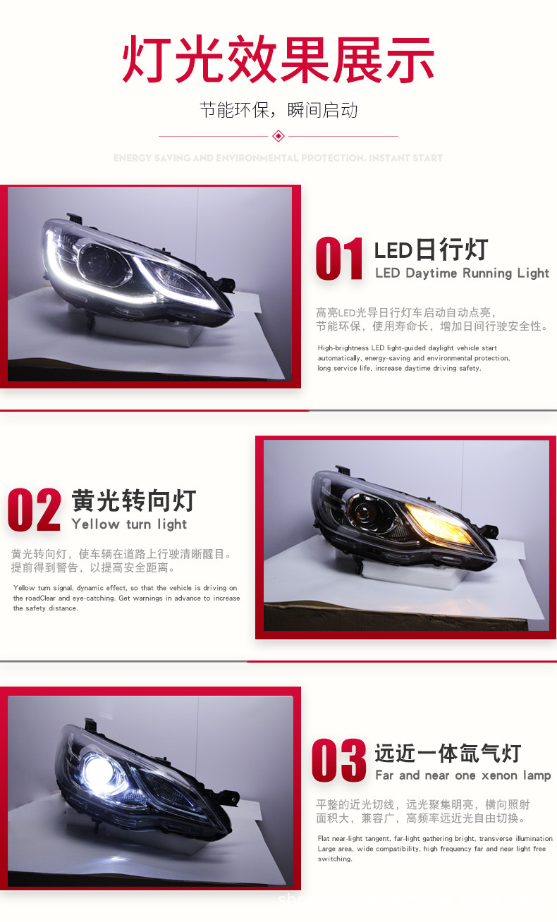 - Enhanced Visibility & Modern Style: Features integrated LED daytime running lights for improved visibility and a contemporary aesthetic, combined with bi-xenon projector technology for superior illumination and a focused beam pattern.
