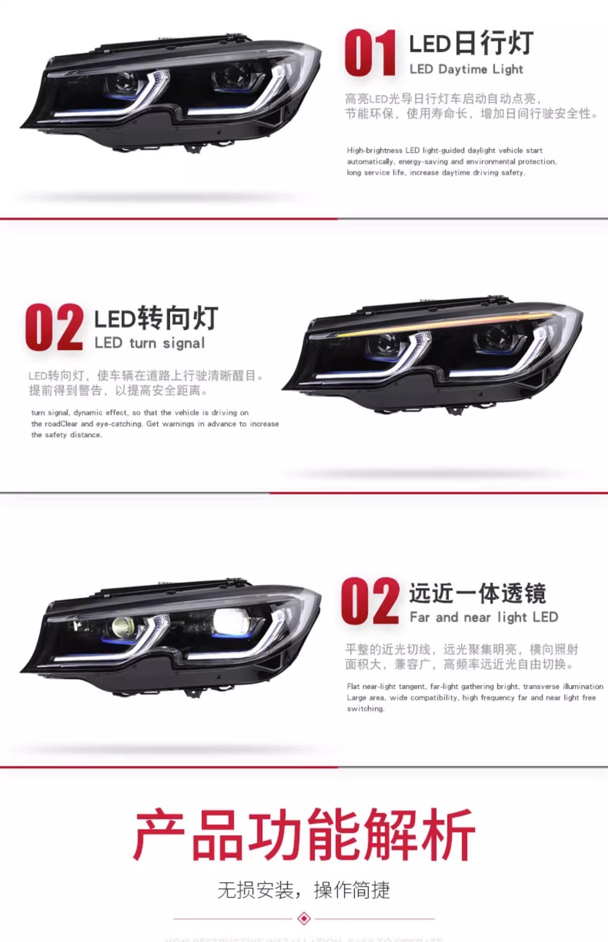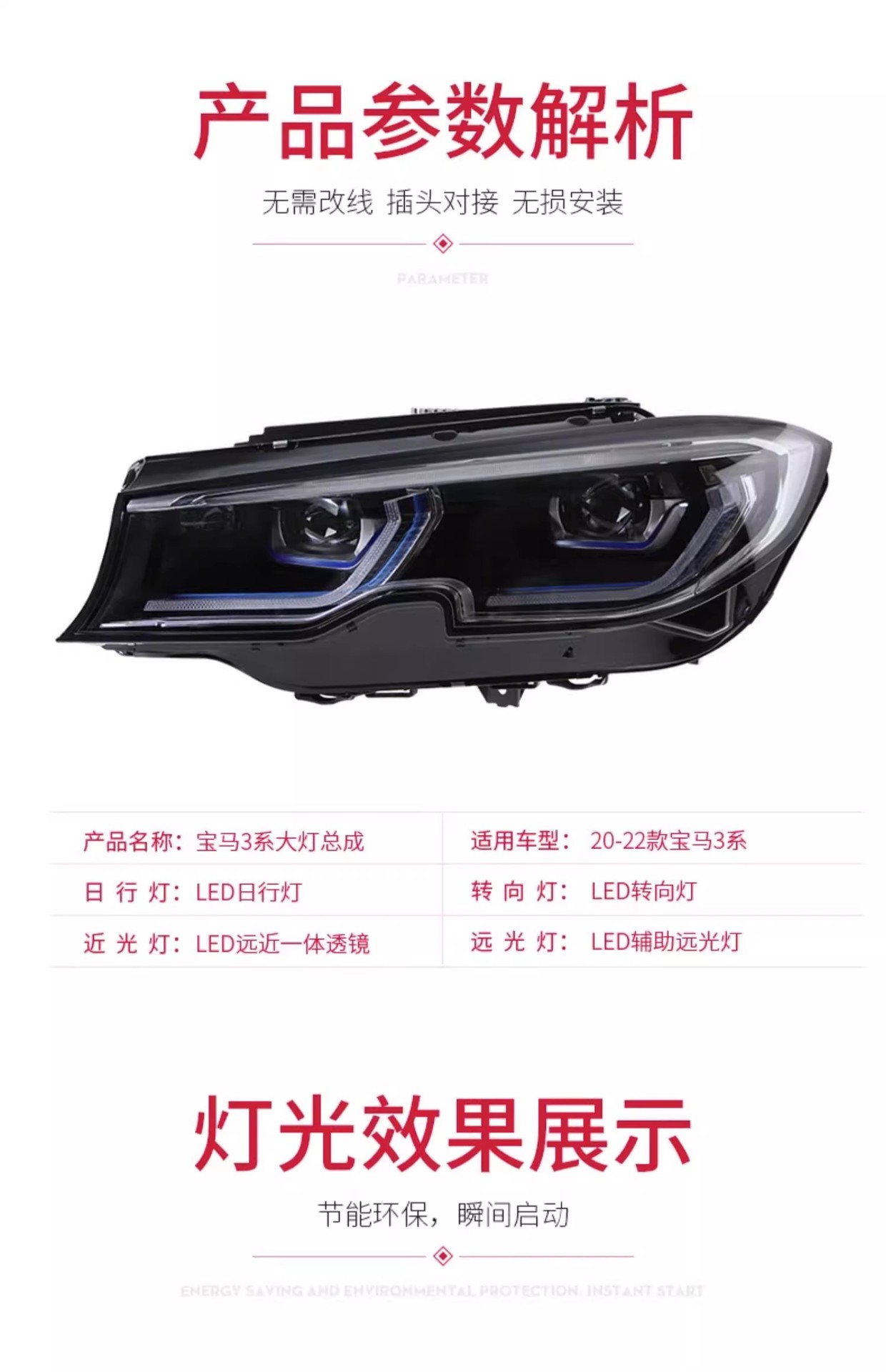 Integrated LED Daytime Running Light Turn Signal Headlight Assembly for BMW 3 Series G20 G28 (2020-2022)