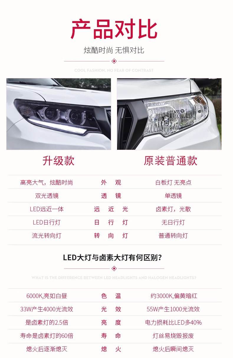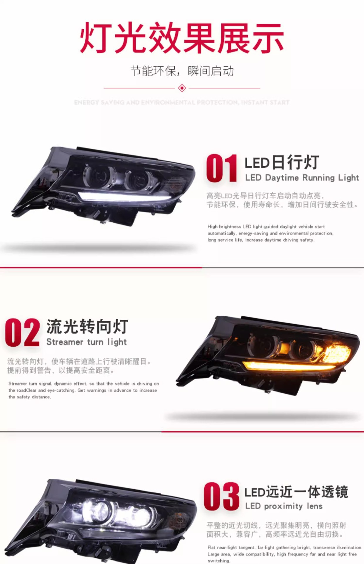 - Complete Headlight Assembly: Includes one set of integrated LED headlight assembly, providing a complete solution for enhancing both visibility and the aesthetic appeal of your Toyota Prado 2018.