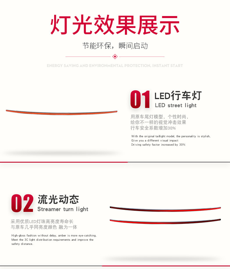 - Comprehensive Lighting: Package includes full LED tail light assembly, serving as running lights, brake lights, and sequential turn signals, offering complete rear lighting enhancement.