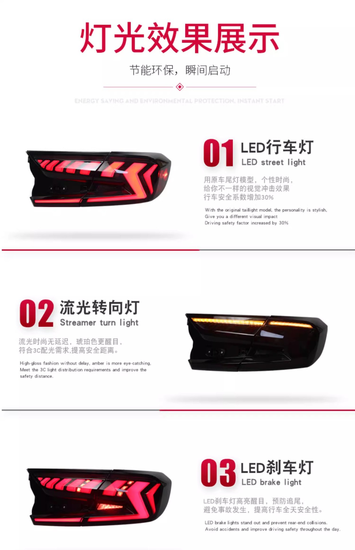 - Enhanced Aesthetics & Safety: Features integrated LED running lights, brake lights, and dynamic sequential turn signals, elevating your car’s appearance while significantly improving visibility and driving safety.