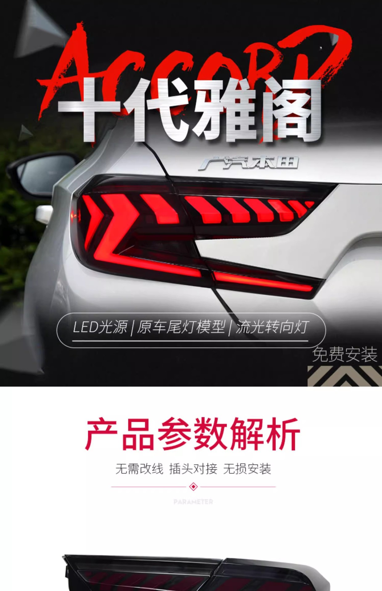 Integrated LED Taillight Assembly running light brake light sequential dynamic turn signal for Honda Accord 10th Gen