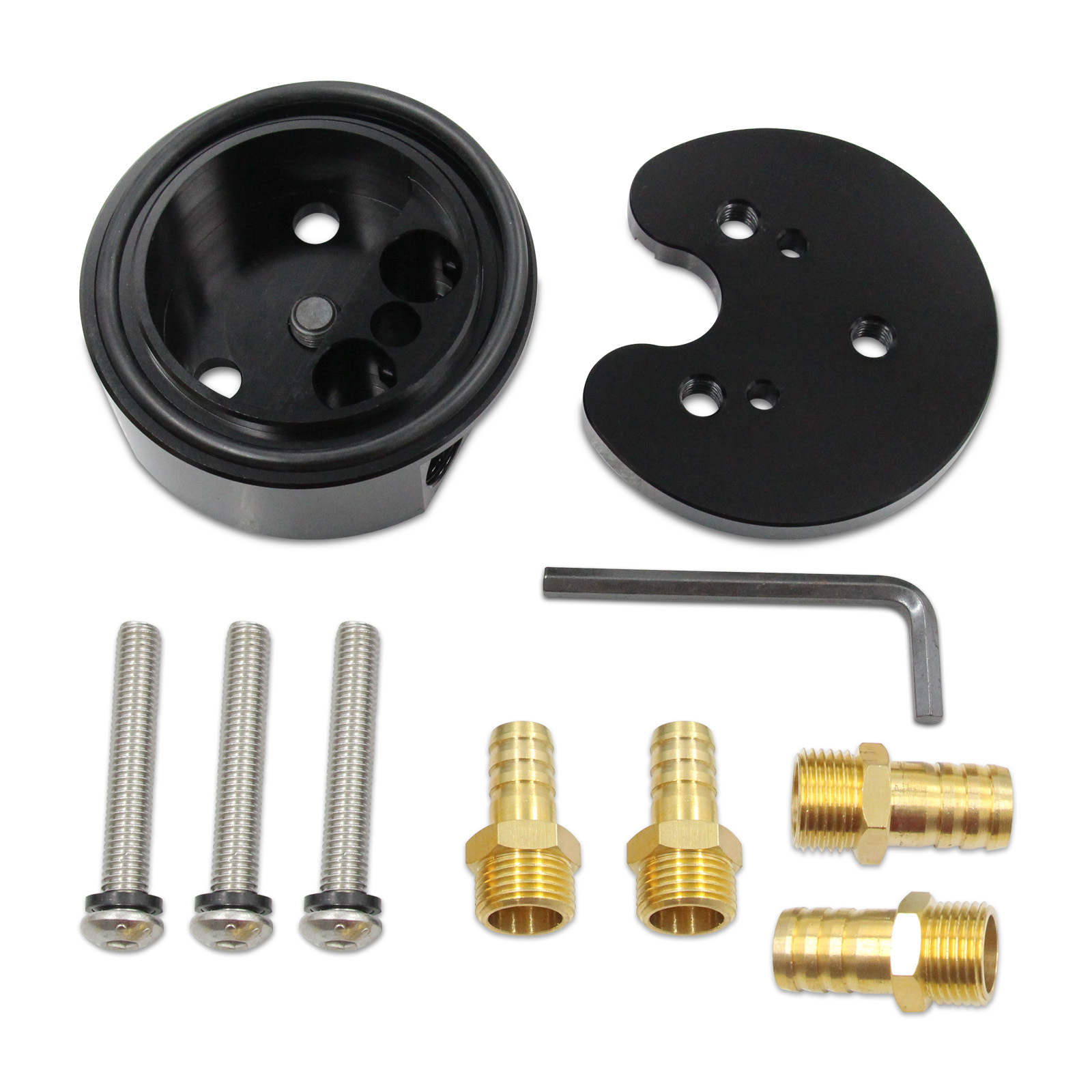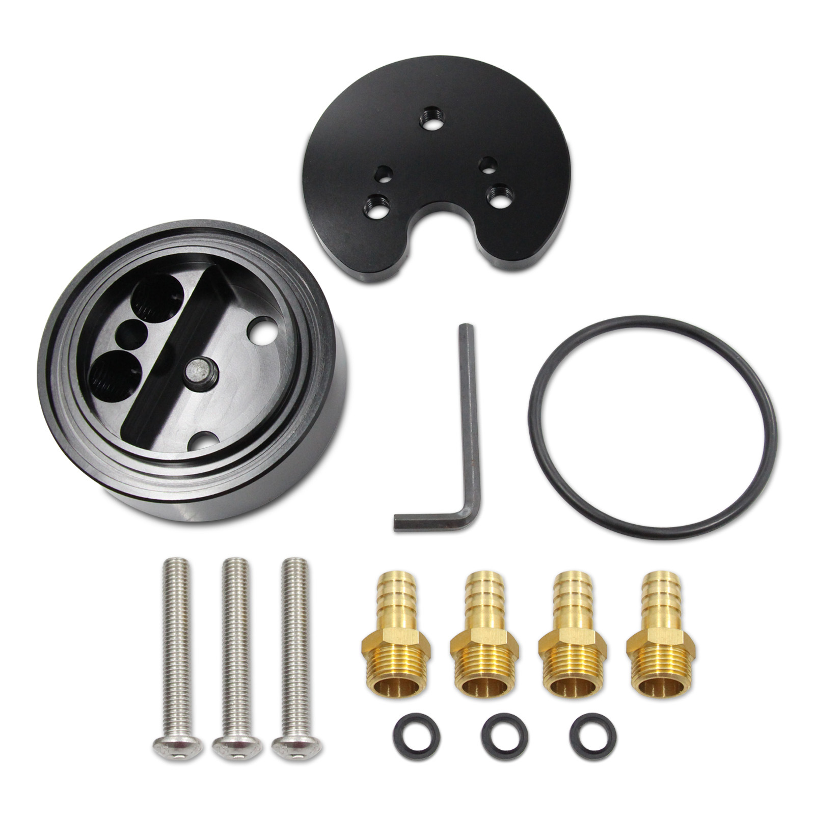• Package includes the aluminum housing, top plate, and necessary fittings (e.g., NPT hose IDs, sealing washers, and bolts) for a complete fuel system upgrade. This kit is an essential component for maximizing fuel flow and cooling for optimal diesel engine performance.