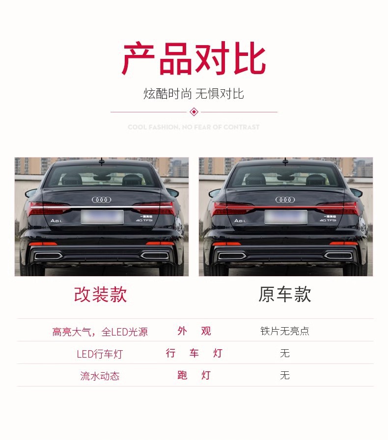 - Complete Package: Includes a full set of upgraded LED tail lights with integrated chrome trim, offering a comprehensive solution to update your Audi A6L C8’s rear lighting and exterior styling.