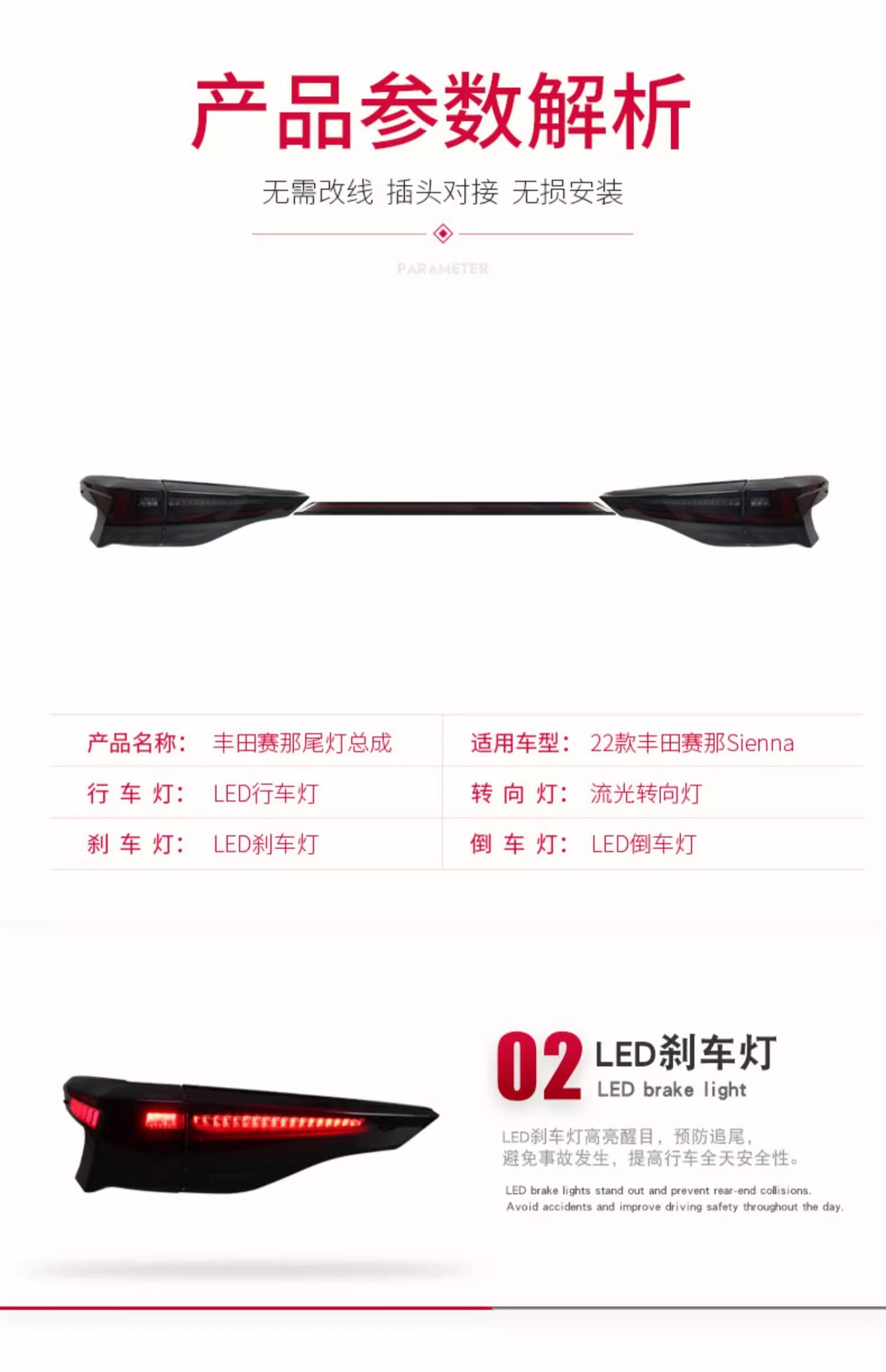 Integrated Through Tail Light Assembly LED Dynamic Flowing Turn Signal for Toyota Sienna 2022