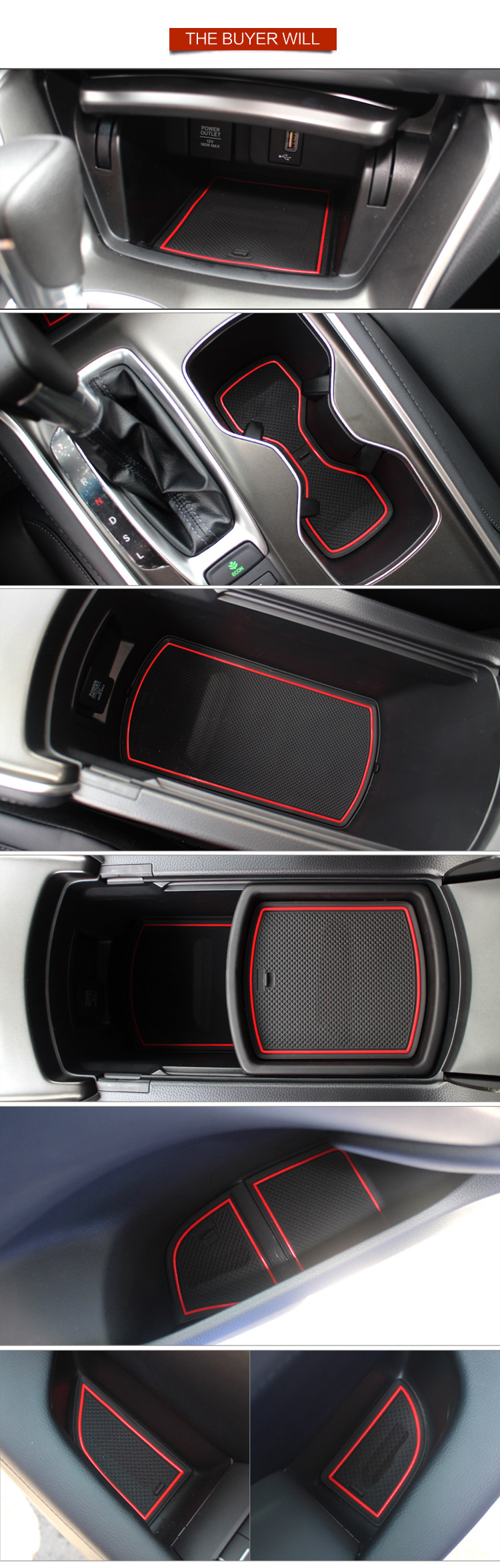Interior Anti-Slip Rubber Liner Mats for 2018 Honda Accord Cup Holder Door Slot Center Console