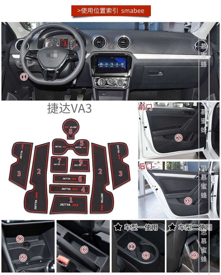 Interior Door Slot Cup Holder Mat Center Console Storage Box Liner Anti-slip Pad for Volkswagen Jetta VA3