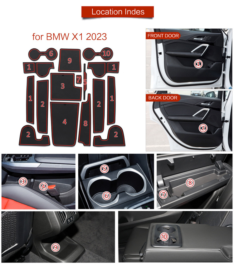 - Direct Fitment: A perfect replacement for the interior door slots and cup holders of BMW X1 2023 models. Specifically designed for precise compatibility.