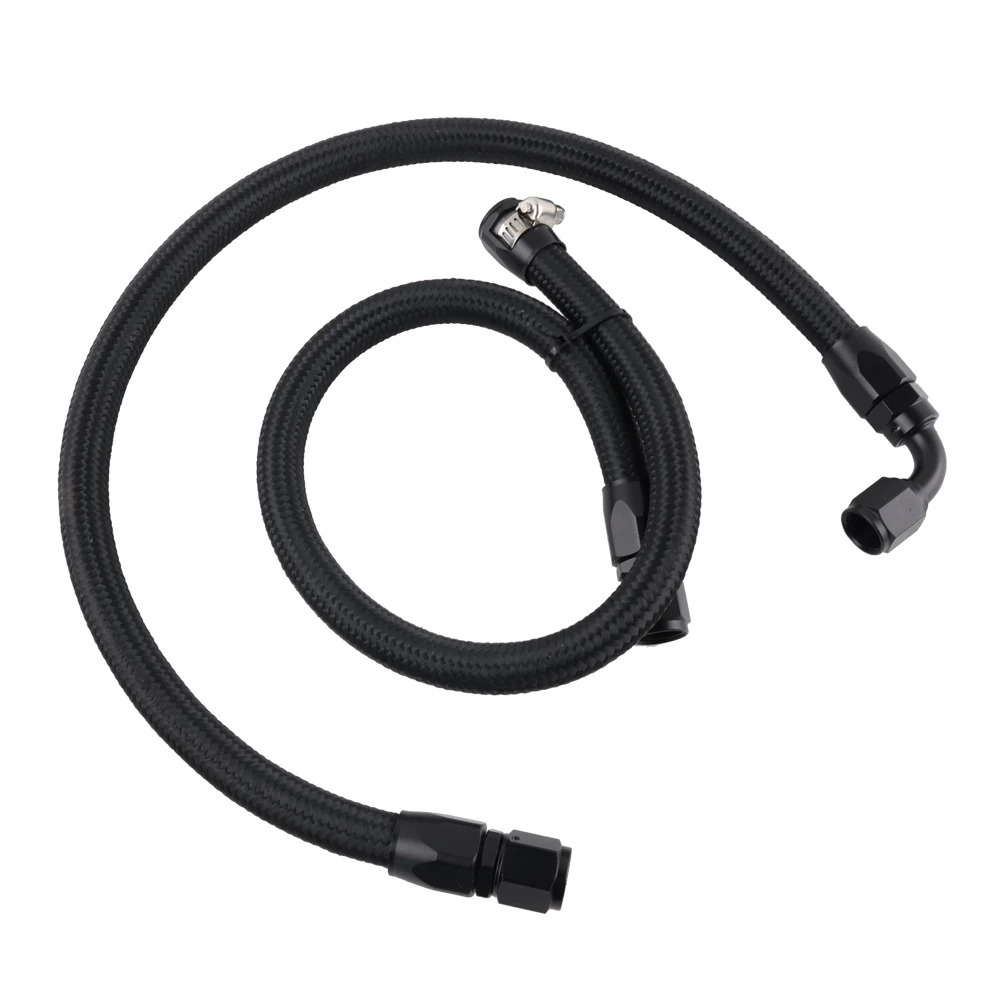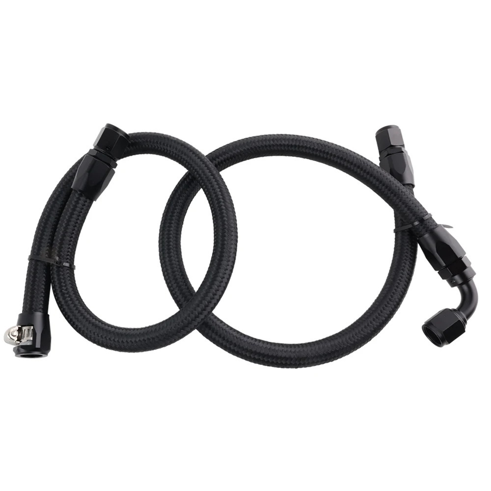 • Constructed from high-quality AN8 fuel lines and fittings (AN6 for some variations), featuring stainless steel braided hose with nylon sheathing for superior durability, resistance to heat and chemicals, and a stealthy look.